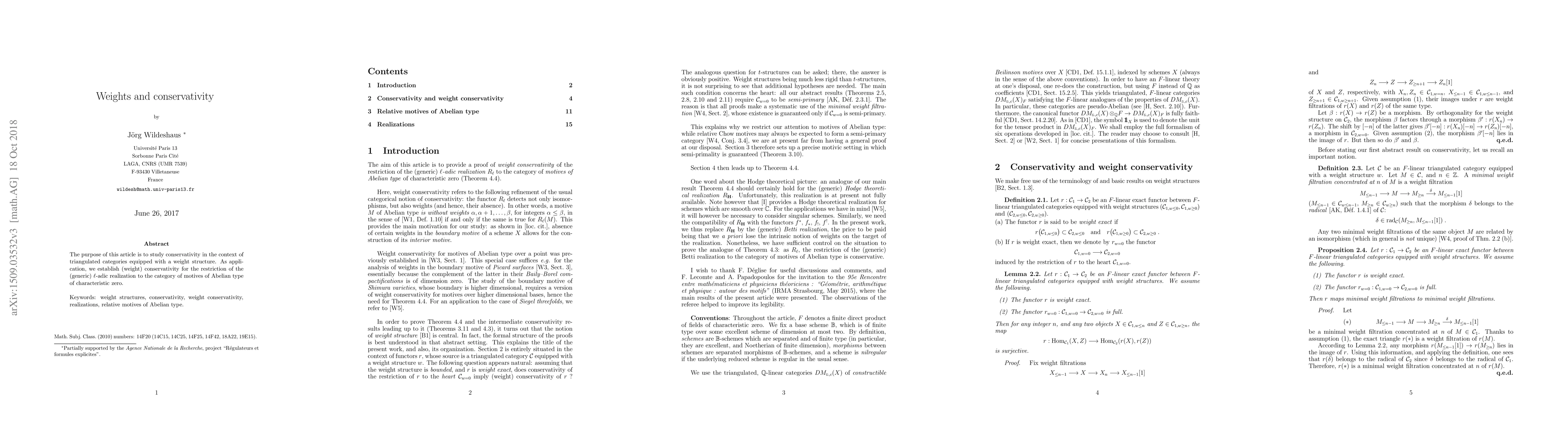 This paper investigates conservativity in triangulated categories with a weight structure, applying the findings to demonstrate conservativity for the restriction of l-adic realizations in the category of motives of Abelian type of characteristic zero.