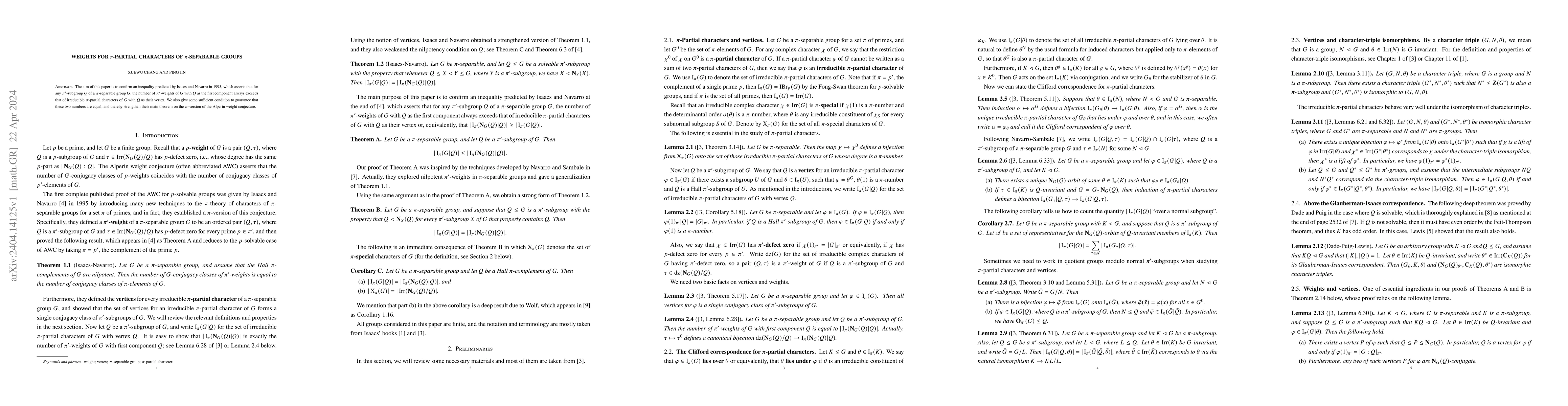 The aim of this paper is to confirm an inequality predicted by Isaacs and Navarro in 1995, which asserts that for any $\pi'$-subgroup $Q$ of a $\pi$-separable group $G$, the number of $\pi'$-weights of $G$ with $Q$ as the first component always exceeds that of irreducible $\pi$-partial characters of $G$ with $Q$ as their vertex. We also give some sufficient condition to guarantee that these two numbers are equal, and thereby strengthen their main theorem on the $\pi$-version of the Alperin weight conjecture.