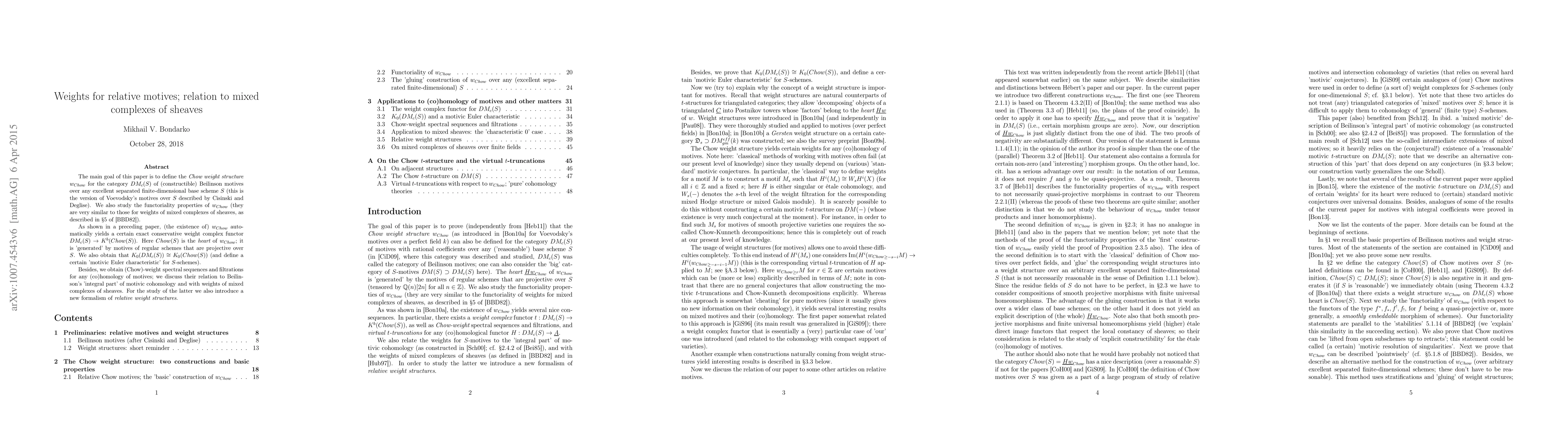 This paper defines the Chow weight structure for Beilinson motives over any base scheme $S$ and studies its functoriality akin to mixed complexes of sheaves. It establishes a weight complex functor and connects it to Grothendieck's group of $S$-motives, introducing relative weight structures for a comprehensive analysis.