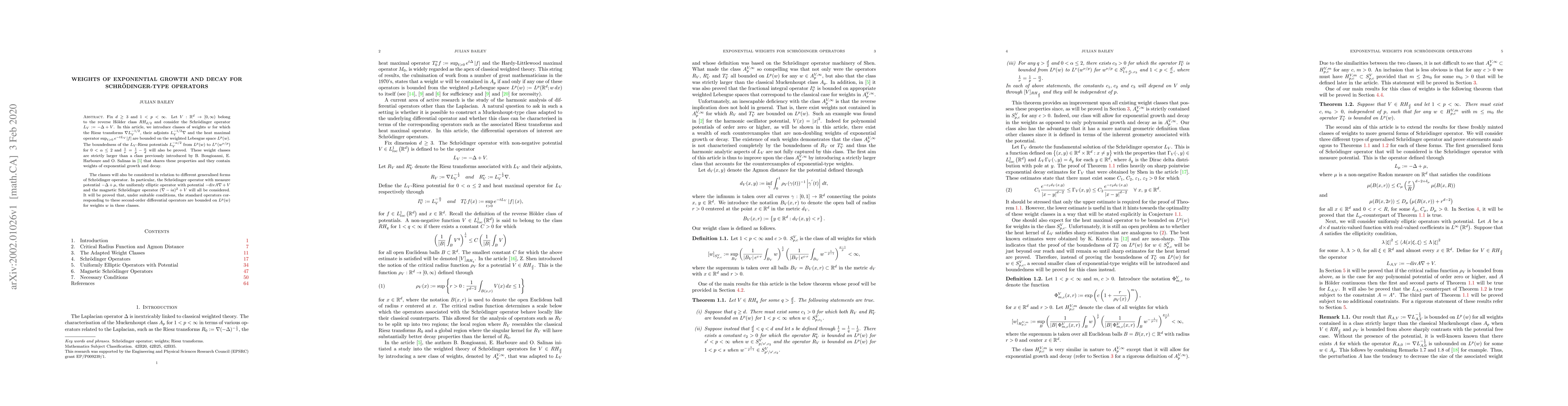 This paper introduces new classes of weights $w$ for which various operators associated with Schrödinger-type equations, including Riesz transforms and the heat maximal operator, are bounded on weighted Lebesgue spaces $L^{p}(w)$. These weight classes extend beyond previous ones and include weights with exponential growth and decay, and are applicable to generalized forms of Schrödinger operators.