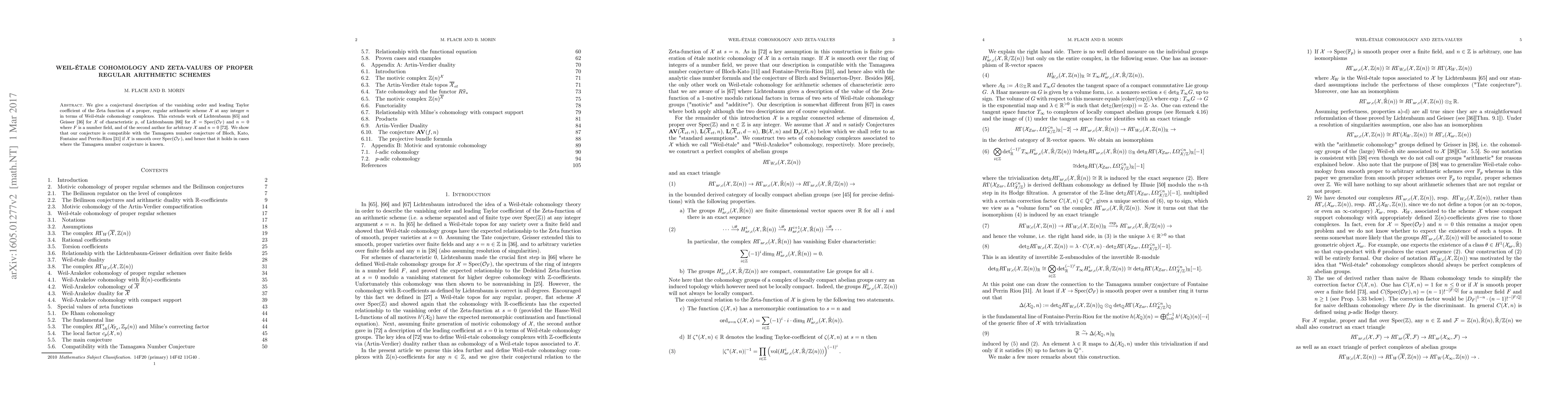 This paper proposes a conjecture linking the vanishing order and leading Taylor coefficient of a proper regular arithmetic scheme's Zeta function to Weil-\'etale cohomology. It extends previous results for schemes of characteristic $p$ and smooth schemes over number fields, and aligns with the Tamagawa number conjecture in known cases.