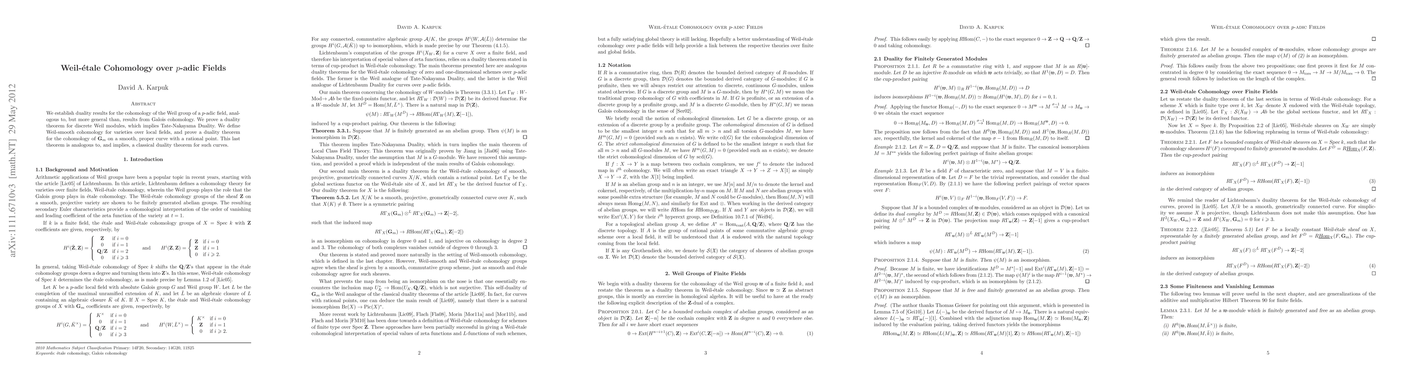 This paper establishes duality results for the cohomology of the Weil group of a $p$-adic field, proving a duality theorem for discrete Weil modules and introducing Weil-smooth cohomology for varieties over local fields. It also proves a duality theorem for the cohomology of $\G_m$ on smooth, proper curves with rational points.