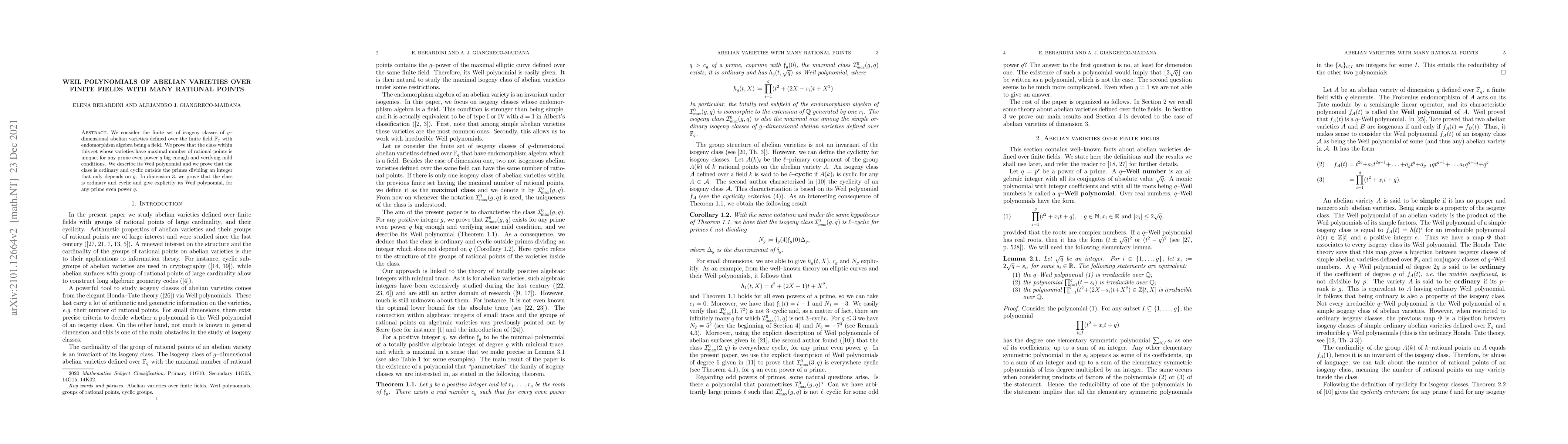 This research paper proves that for abelian varieties over finite fields with many rational points, a unique class exists with maximal rational points, which is ordinary and cyclic outside specific primes.