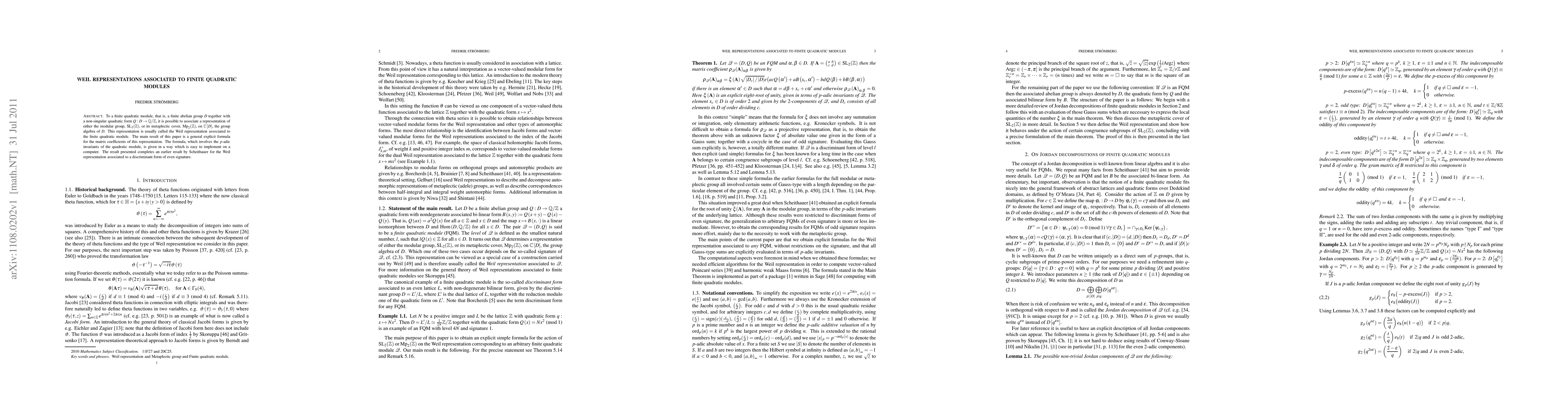 To a finite quadratic module, that is, a finite abelian group D together with a non-singular quadratic form Q:D --> Q/Z, it is possible to associate a representation of either the modular group, SL(2,Z), or its metaplectic cover, Mp(2,Z), on C[D], the group algebra of D. This representation is usually called the Weil representation associated to the finite quadratic module. The main result of this paper is a general explicit formula for the matrix coefficients of this representation. The formula, which involves the p-adic invariants of the quadratic module, is given in a way which is easy to implement on a computer. The result presented completes an earlier result by Scheithauer for the Weil representation associated to a discriminant form of even signature.