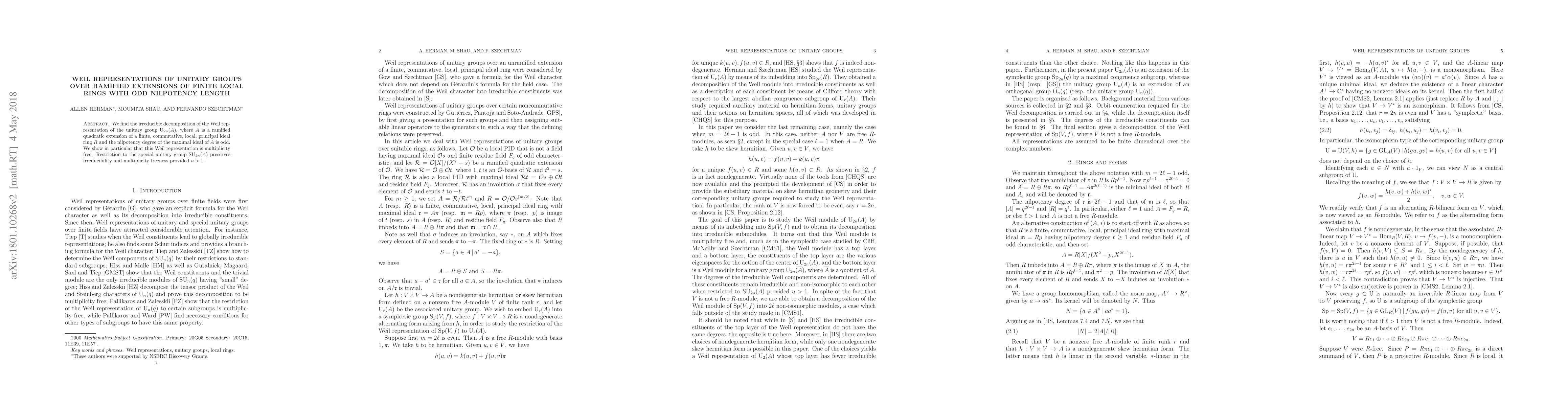 Researchers found the Weil representation of unitary groups over ramified extensions of finite local rings with odd nilpotency length is multiplicity-free, preserving irreducibility when restricted to special unitary groups for n > 1.