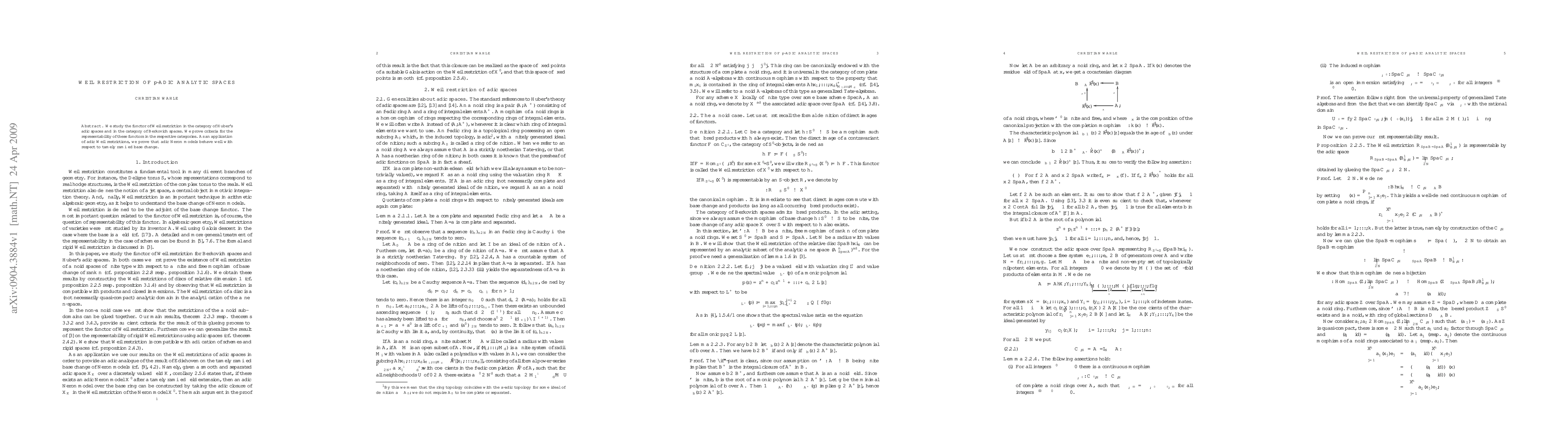 This paper investigates the Weil restriction functor in the context of Huber's adic spaces and Berkovich spaces, establishing criteria for its representability. It also demonstrates the favorable behavior of adic Néronian models under tamely ramified base change.