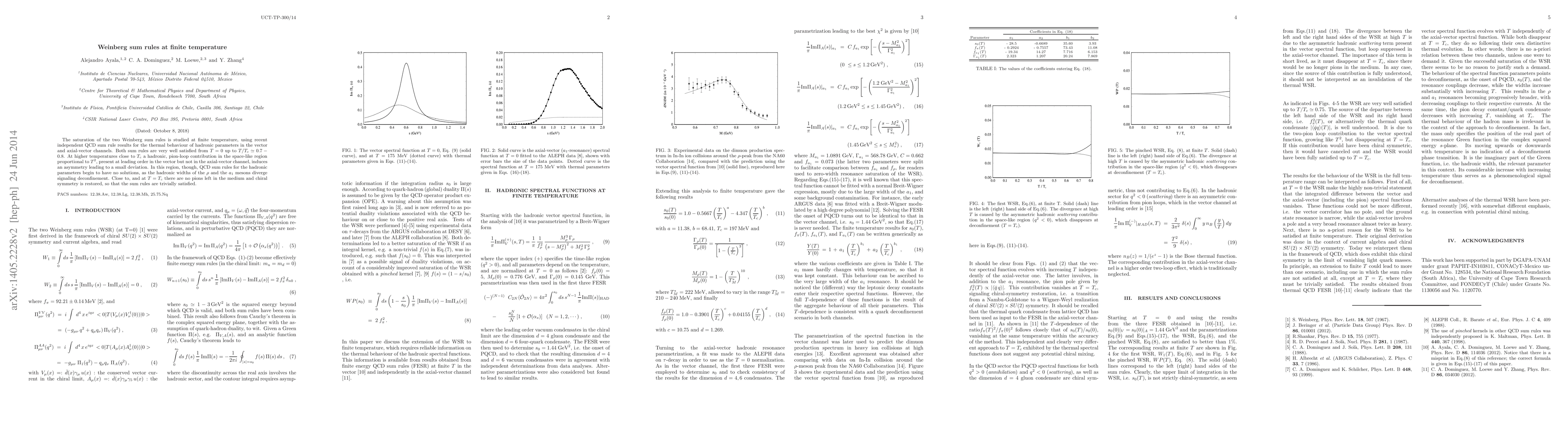 The paper extends the Weinberg sum rules to finite temperature, utilizing reliable information from finite energy QCD sum rules at finite T in both vector and axial-vector channels.