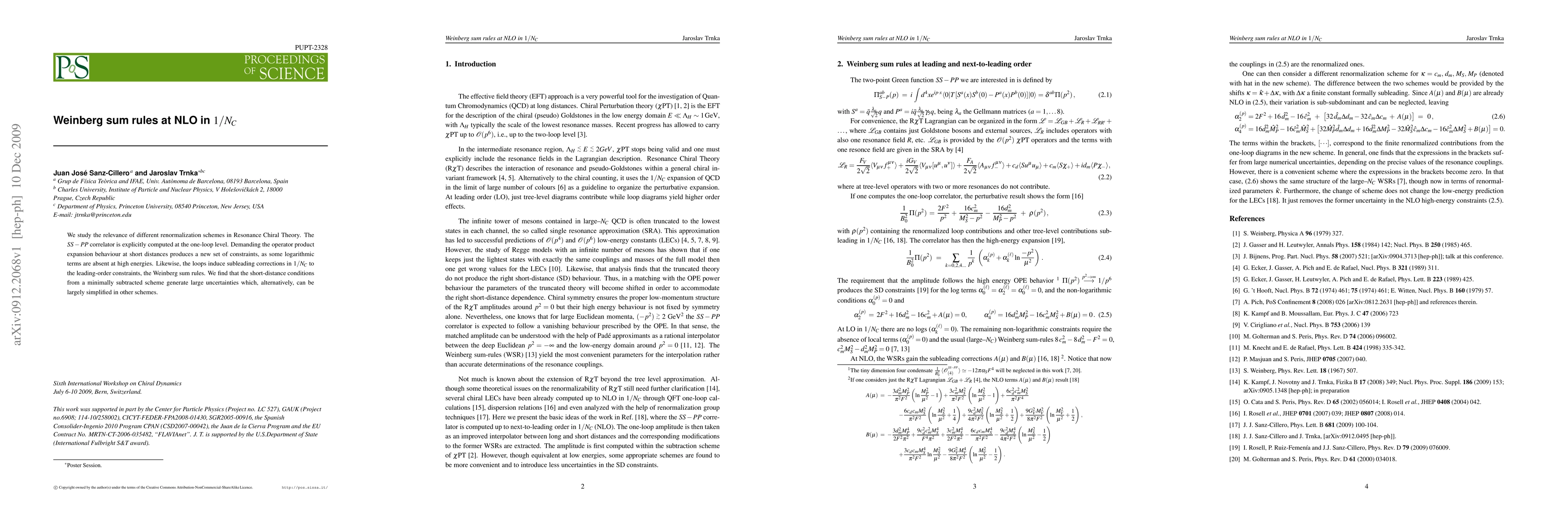 Researchers studied resonance chiral theory using renormalization schemes to compute constraints on Weinberg sum rules at one-loop level, finding that certain conditions simplify uncertainties.