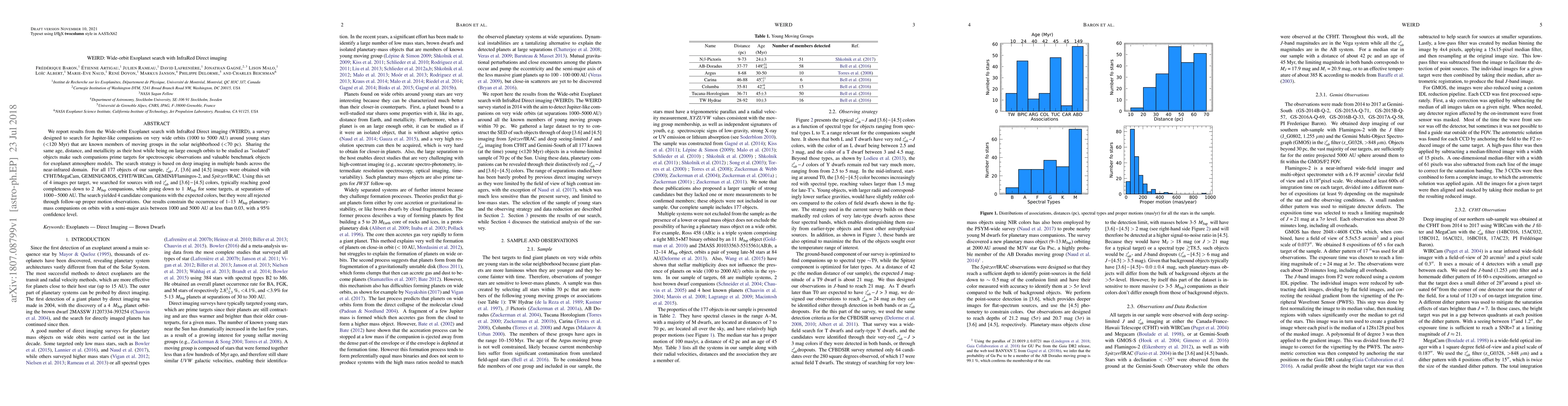 We report results from the Wide-orbit Exoplanet search with InfraRed Direct imaging (WEIRD), a survey designed to search for Jupiter-like companions on very wide orbits (1000 to 5000 AU) around young stars ($<$120 Myr) that are known members of moving groups in the solar neighborhood ($<$70 pc). Sharing the same age, distance, and metallicity as their host while being on large enough orbits to be studied as "isolated" objects make such companions prime targets for spectroscopic observations and valuable benchmark objects for exoplanet atmosphere models. The search strategy is based on deep imaging in multiple bands across the near-infrared domain. For all 177 objects of our sample, $z_{ab}^\prime$, $J$, [3.6] and [4.5] images were obtained with CFHT/MegaCam, GEMINI/GMOS, CFHT/WIRCam, GEMINI/Flamingos-2, and $Spitzer$/IRAC. Using this set of 4 images per target, we searched for sources with red $z_{ab}^\prime$ and $[3.6]-[4.5]$ colors, typically reaching good completeness down to 2Mjup companions, while going down to 1Mjup for some targets, at separations of $1000-5000$ AU. The search yielded 4 candidate companions with the expected colors, but they were all rejected through follow-up proper motion observations. Our results constrain the occurrence of 1-13 Mjup planetary-mass companions on orbits with a semi-major axis between 1000 and 5000 AU at less than 0.03, with a 95\% confidence level.