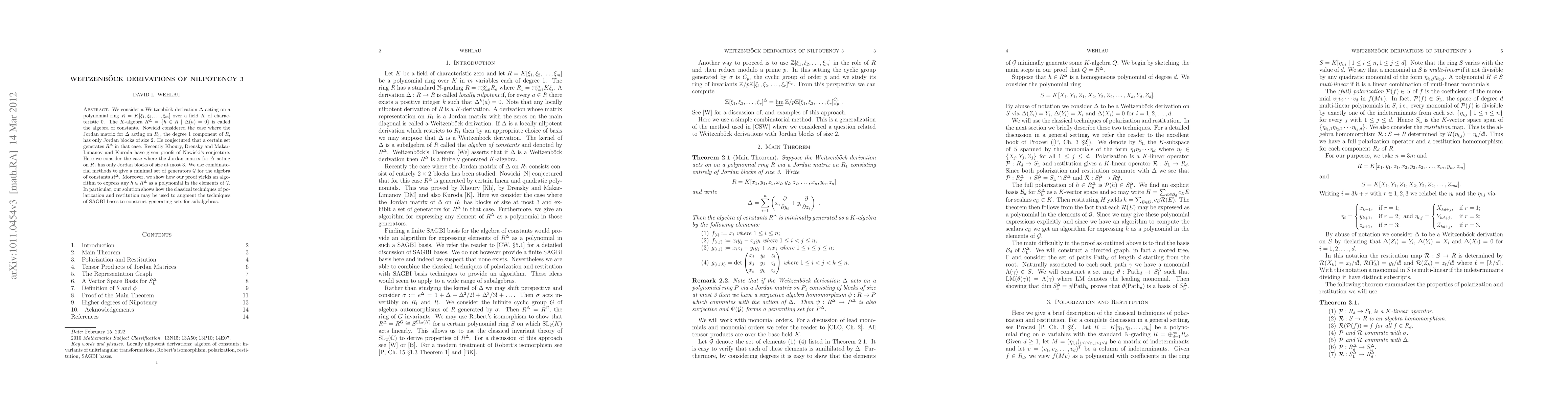 The paper uses combinatorial methods to construct a minimal set of generators for the algebra of constants $R^\Delta$ under specific conditions on the Jordan matrix for $\Delta$ acting on $R_1$. It also provides an algorithm to express any element of $R^\Delta$ as a polynomial in these generators.