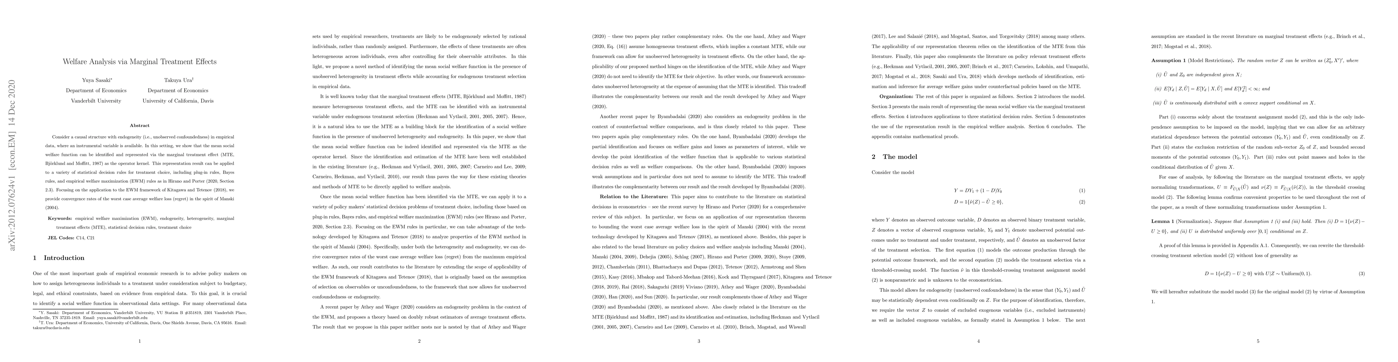 Researchers demonstrate that marginal treatment effects can identify mean social welfare functions in causal structures with endogeneity, providing a foundation for statistical decision-making frameworks like EWM rules.