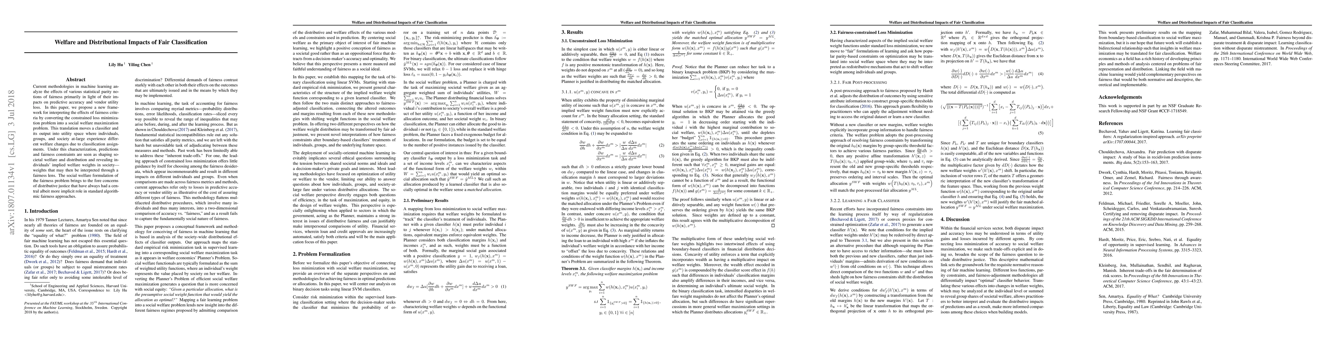 Current methodologies in machine learning analyze the effects of various statistical parity notions of fairness primarily in light of their impacts on predictive accuracy and vendor utility loss. In this paper, we propose a new framework for interpreting the effects of fairness criteria by converting the constrained loss minimization problem into a social welfare maximization problem. This translation moves a classifier and its output into utility space where individuals, groups, and society at-large experience different welfare changes due to classification assignments. Under this characterization, predictions and fairness constraints are seen as shaping societal welfare and distribution and revealing individuals' implied welfare weights in society--weights that may then be interpreted through a fairness lens. The social welfare formulation of the fairness problem brings to the fore concerns of distributive justice that have always had a central albeit more implicit role in standard algorithmic fairness approaches.