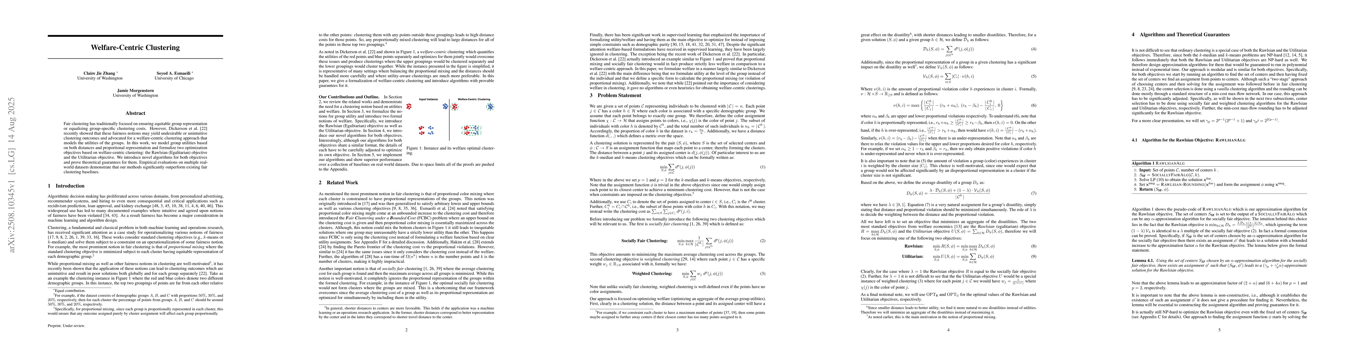 Fair clustering has traditionally focused on ensuring equitable group representation or equalizing group-specific clustering costs. However, Dickerson et al. (2025) recently showed that these fairness notions may yield undesirable or unintuitive clustering outcomes and advocated for a welfare-centric clustering approach that models the utilities of the groups. In this work, we model group utilities based on both distances and proportional representation and formalize two optimization objectives based on welfare-centric clustering: the Rawlsian (Egalitarian) objective and the Utilitarian objective. We introduce novel algorithms for both objectives and prove theoretical guarantees for them. Empirical evaluations on multiple real-world datasets demonstrate that our methods significantly outperform existing fair clustering baselines.