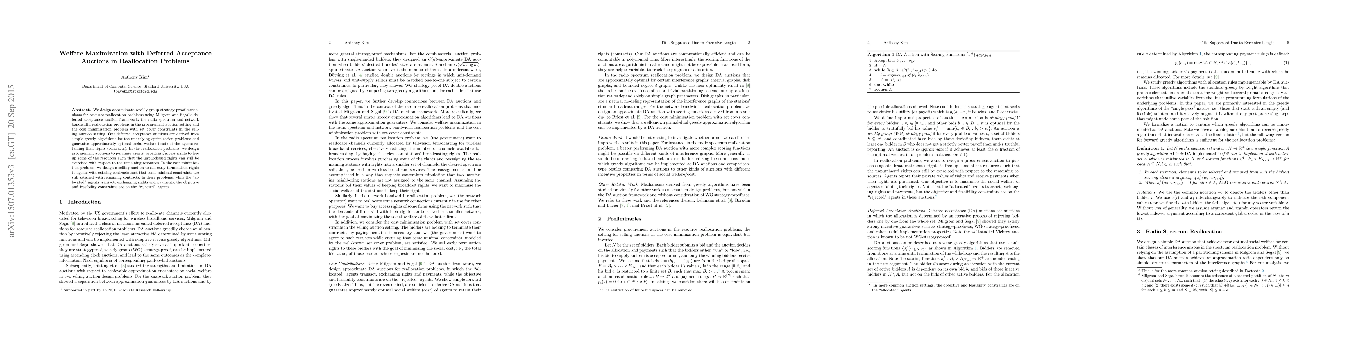 This paper proposes approximate strategy-proof mechanisms for resource reallocation using deferred acceptance auctions, ensuring near-optimal welfare for retained rights in procurement and selling auction settings. The approach focuses on optimizing social welfare while addressing constraints for agents who are not allocated resources.