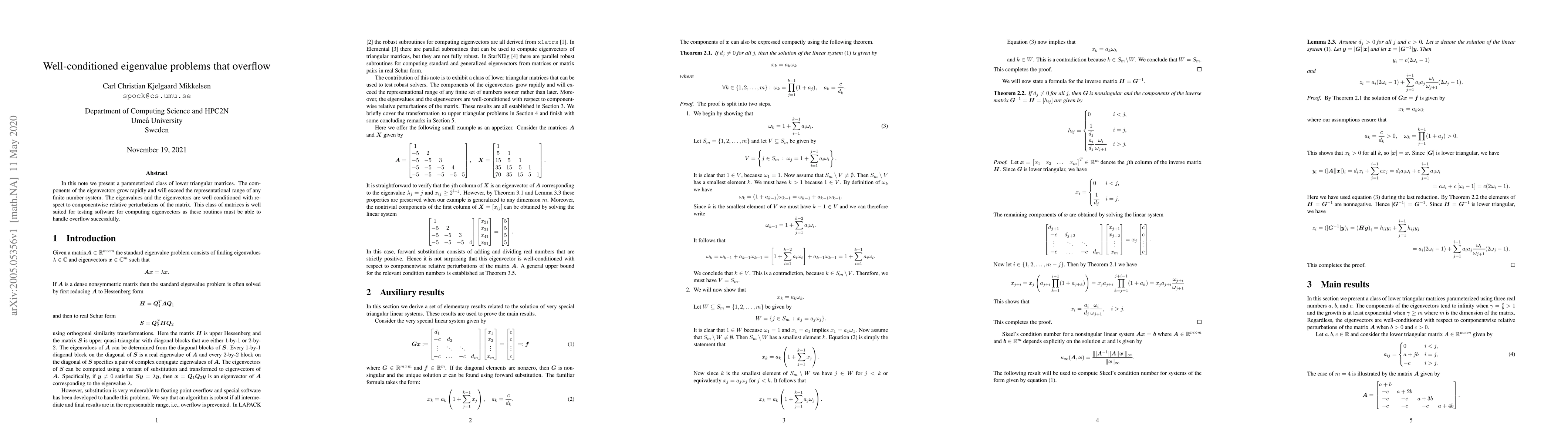 In this note we present a parameterized class of lower triangular matrices. The components of the eigenvectors grow rapidly and will exceed the representational range of any finite number system. The eigenvalues and the eigenvectors are well-conditioned with respect to componentwise relative perturbations of the matrix. This class of matrices is well suited for testing software for computing eigenvectors as these routines must be able to handle overflow successfully.