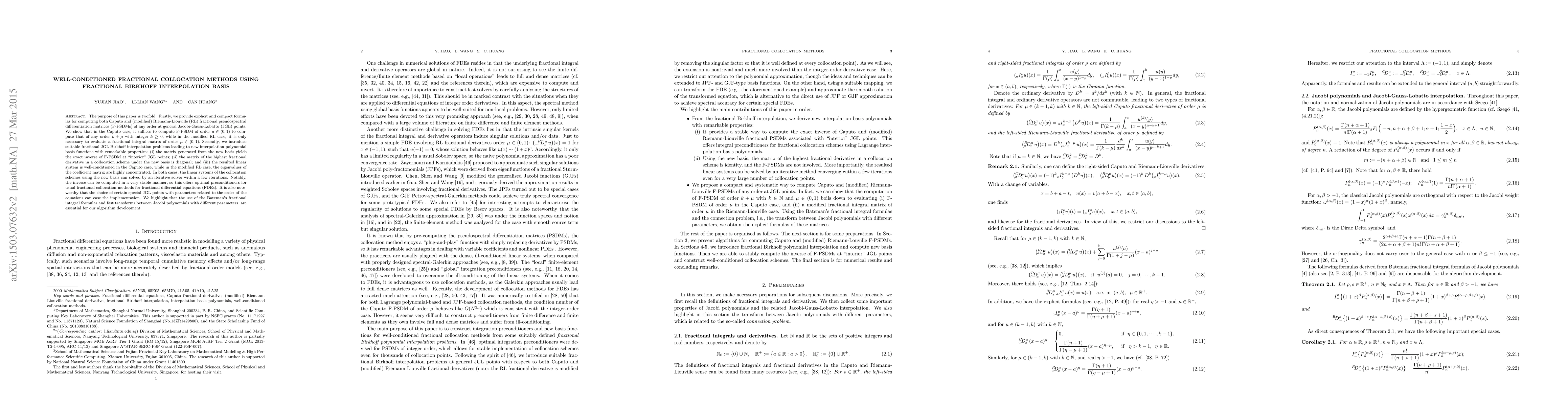 This paper develops explicit formulas for fractional pseudospectral differentiation matrices and introduces fractional Birkhoff interpolation basis functions based on Jacobi-Gauss-Lobatto points. The new basis ensures well-conditioned linear systems and optimal preconditioners for solving fractional differential equations, with stable inverse computation and efficient iterative solvers.