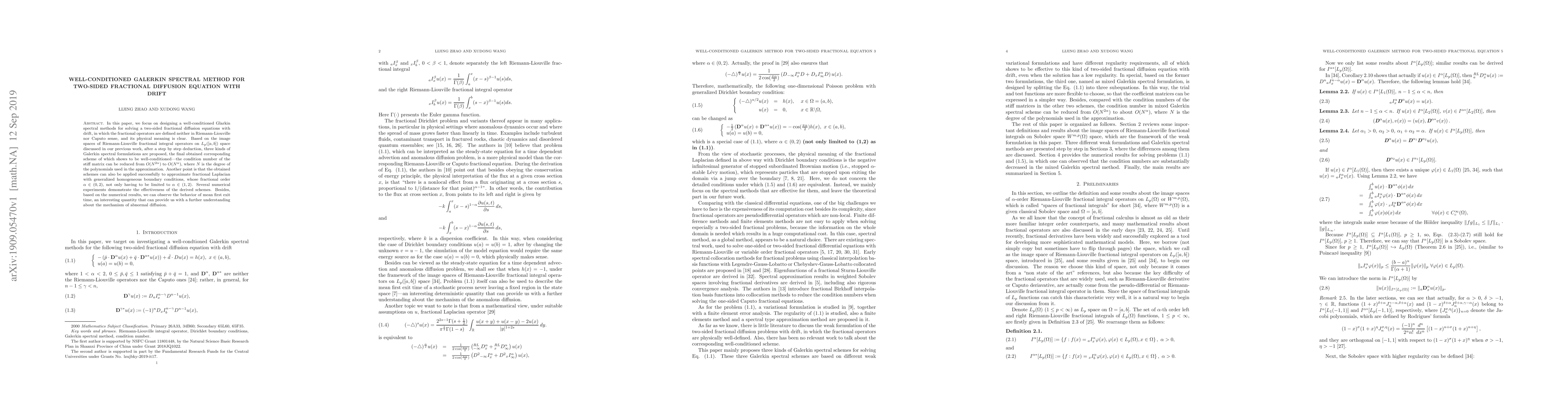 A new method for solving two-sided fractional diffusion equations with drift is proposed, reducing the condition number of stiff matrices from $O(N^{2eta})$ to $O(N^eta)$.