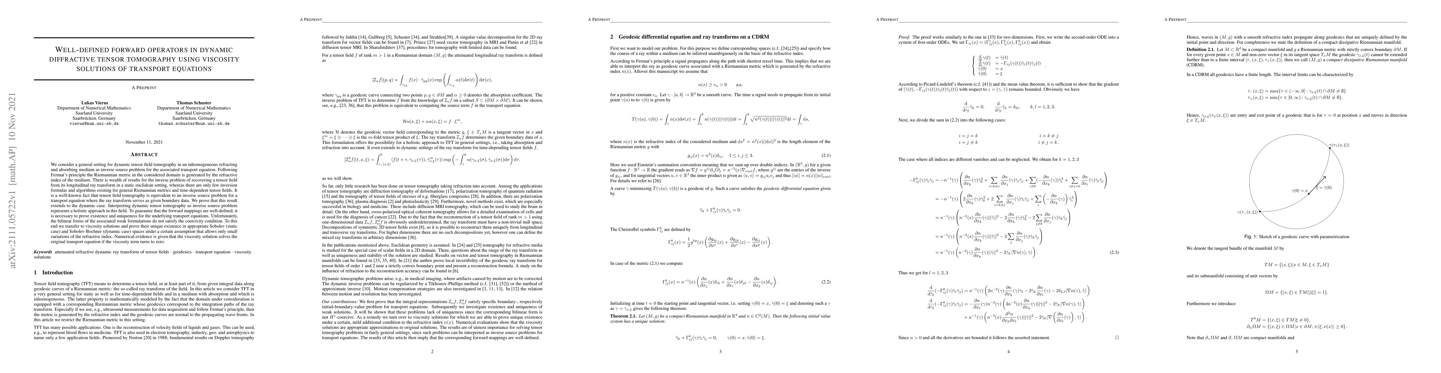 This paper addresses dynamic diffractive tensor tomography in an inhomogeneous medium, framing it as an inverse source problem for transport equations. It proves the existence and uniqueness of viscosity solutions for the transport equations, ensuring well-defined forward mappings, and provides numerical evidence supporting the solution's validity.