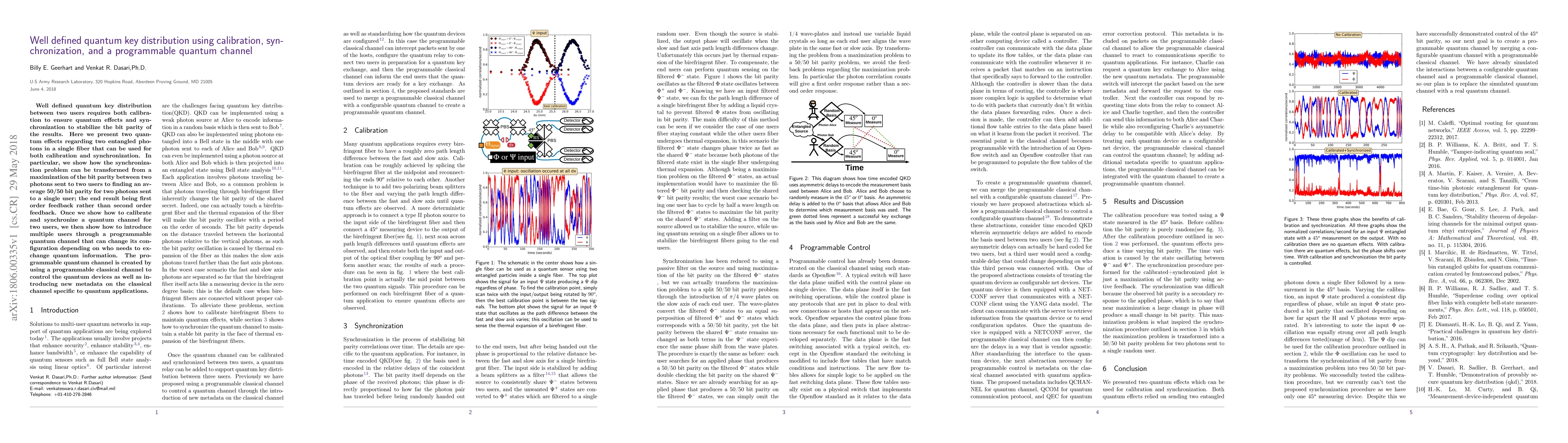This paper presents a method for well-defined quantum key distribution (QKD) using calibration and synchronization techniques. It introduces two quantum effects for calibration and synchronization of entangled photons in a fiber, transforming the synchronization problem into a simpler first-order feedback process. The paper also details a programmable quantum channel to manage multiple users in QKD.