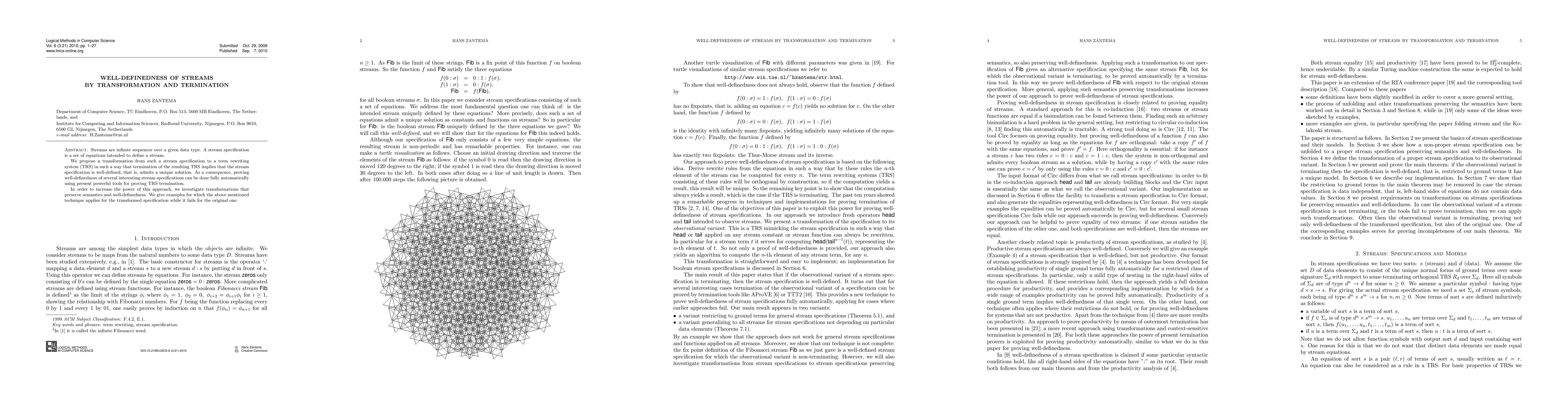 This paper proposes a method to transform stream specifications into term rewriting systems (TRS) where the termination of the TRS guarantees the well-definedness of the stream. It demonstrates how automatic tools for proving TRS termination can be used to verify the well-definedness of stream specifications, and explores transformations that maintain both semantics and well-definedness.