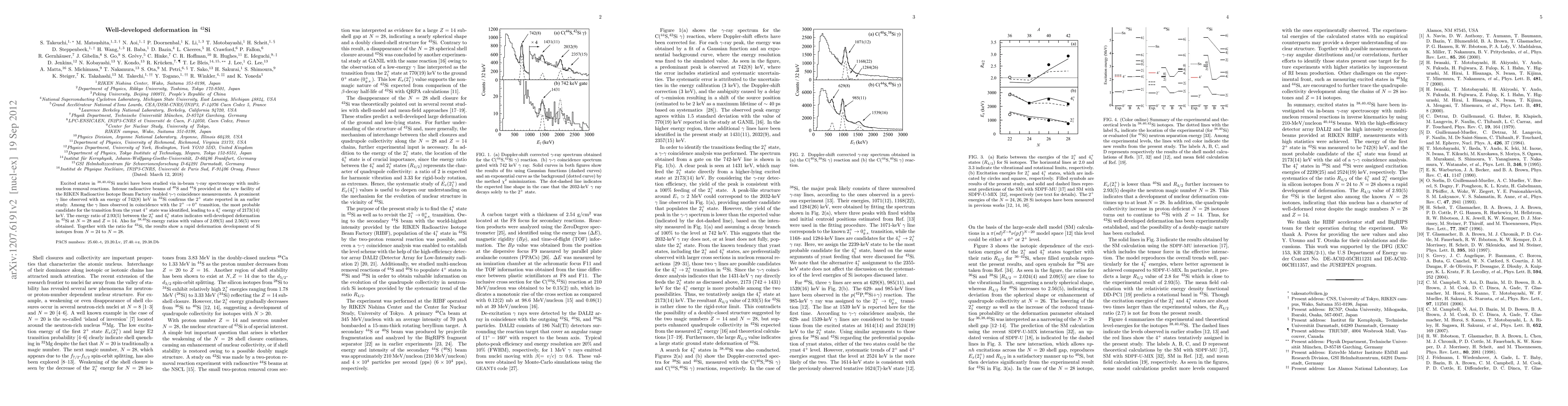 Excited states in 38,40,42Si nuclei have been studied via in-beam gamma-ray spectroscopy with multi-nucleon removal reactions. Intense radioactive beams of 40S and 44S provided at the new facility of the RIKEN Radioactive Isotope Beam Factory enabled gamma-gamma coincidence measurements. A prominent gamma line observed with an energy of 742(8) keV in 42Si confirms the 2+ state reported in an earlier study. Among the gamma lines observed in coincidence with the 2+ -> 0+ transition, the most probable candidate for the transition from the yrast 4+ state was identified, leading to a 4+_1 energy of 2173(14) keV. The energy ratio of 2.93(5) between the 2+_1 and 4+_1 states indicates well-developed deformation in 42Si at N=28 and Z=14. Also for 38,40Si energy ratios with values of 2.09(5) and 2.56(5) were obtained. Together with the ratio for 42Si, the results show a rapid deformation development of Si isotopes from N=24 to N=28.
