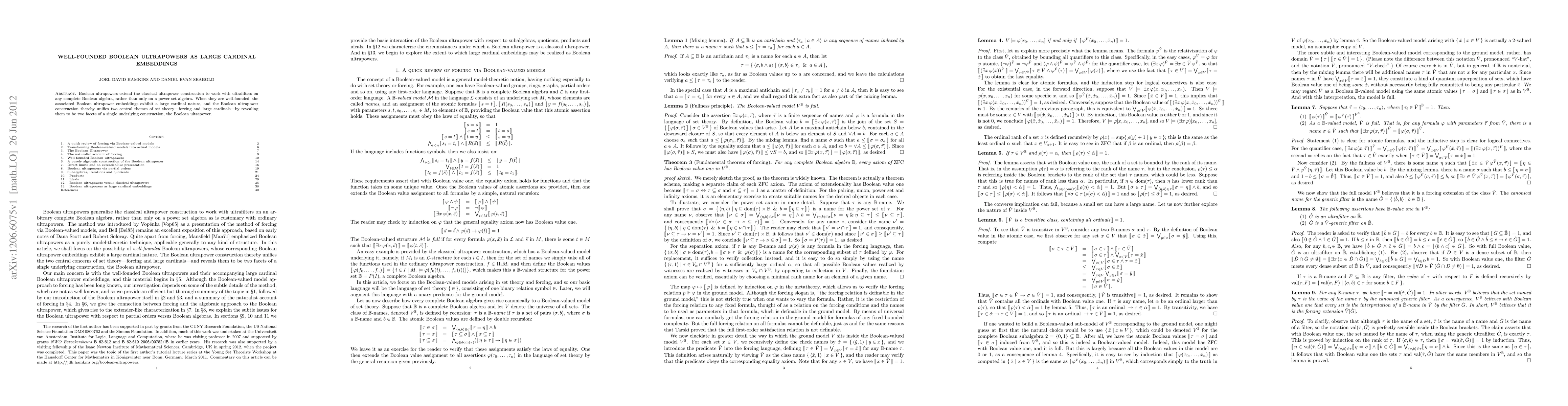 Boolean ultrapowers extend the classical ultrapower construction to work with ultrafilters on any complete Boolean algebra, rather than only on a power set algebra. When they are well-founded, the associated Boolean ultrapower embeddings exhibit a large cardinal nature, and the Boolean ultrapower construction thereby unifies two central themes of set theory---forcing and large cardinals---by revealing them to be two facets of a single underlying construction, the Boolean ultrapower.