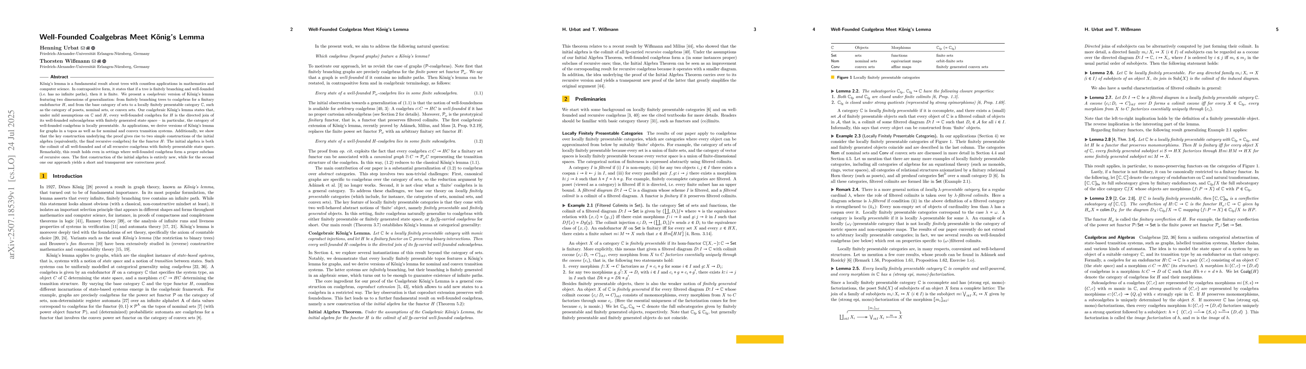 K\"onig's lemma is a fundamental result about trees with countless applications in mathematics and computer science. In contrapositive form, it states that if a tree is finitely branching and well-founded (i.e. has no infinite paths), then it is finite. We present a coalgebraic version of K\"onig's lemma featuring two dimensions of generalization: from finitely branching trees to coalgebras for a finitary endofunctor H, and from the base category of sets to a locally finitely presentable category C, such as the category of posets, nominal sets, or convex sets. Our coalgebraic K\"onig's lemma states that, under mild assumptions on C and H, every well-founded coalgebra for H is the directed join of its well-founded subcoalgebras with finitely generated state space -- in particular, the category of well-founded coalgebras is locally presentable. As applications, we derive versions of K\"onig's lemma for graphs in a topos as well as for nominal and convex transition systems. Additionally, we show that the key construction underlying the proof gives rise to two simple constructions of the initial algebra (equivalently, the final recursive coalgebra) for the functor H: The initial algebra is both the colimit of all well-founded and of all recursive coalgebras with finitely presentable state space. Remarkably, this result holds even in settings where well-founded coalgebras form a proper subclass of recursive ones. The first construction of the initial algebra is entirely new, while for the second one our approach yields a short and transparent new correctness proof.