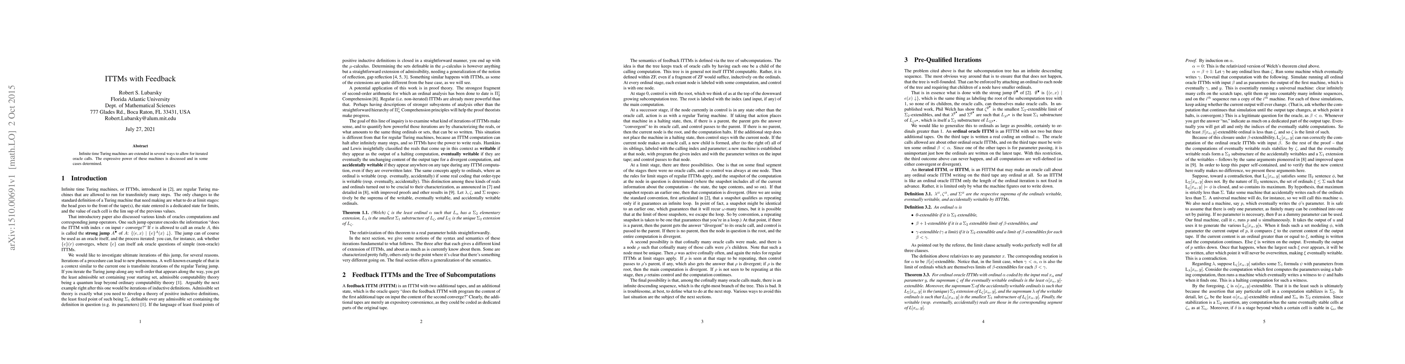 Summary: This paper extends infinite time Turing machines to support iterated oracle calls, exploring and, in some cases, quantifying their enhanced expressive power. The study focuses on the implications of these extensions on computational capabilities.