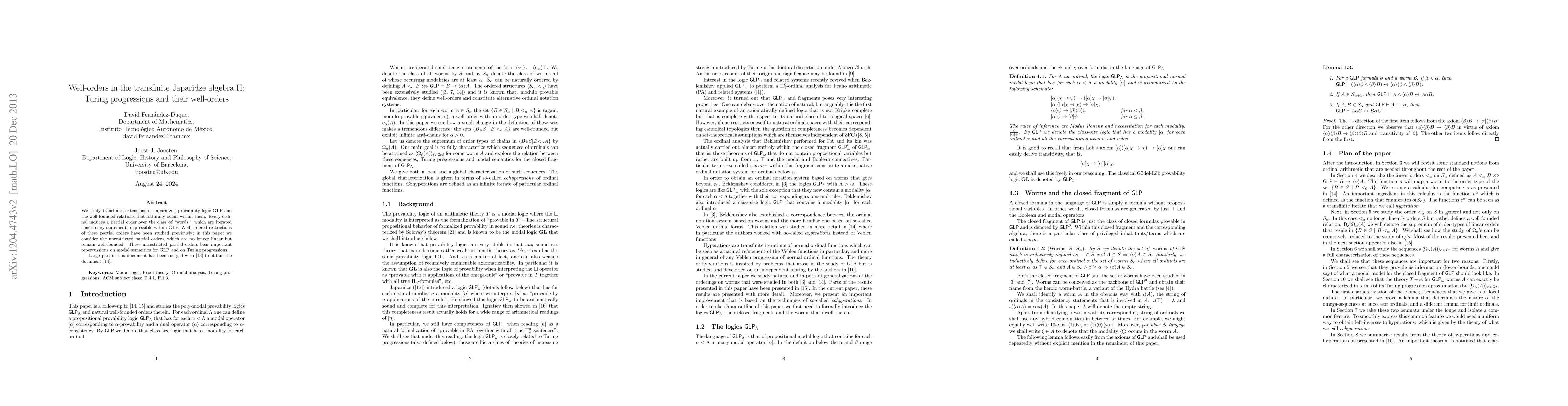 We study transfinite extensions of Japaridze's provability logic GLP and the well-founded relations that naturally occur within them. Every ordinal induces a partial order over the class of "words," which are iterated consistency statements expressible within GLP. Well-ordered restrictions of these partial orders have been studied previously; in this paper we consider the unrestricted partial orders, which are no longer linear but remain well-founded. These unrestricted partial orders bear important repercussions on modal semantics for GLP and on Turing progressions.