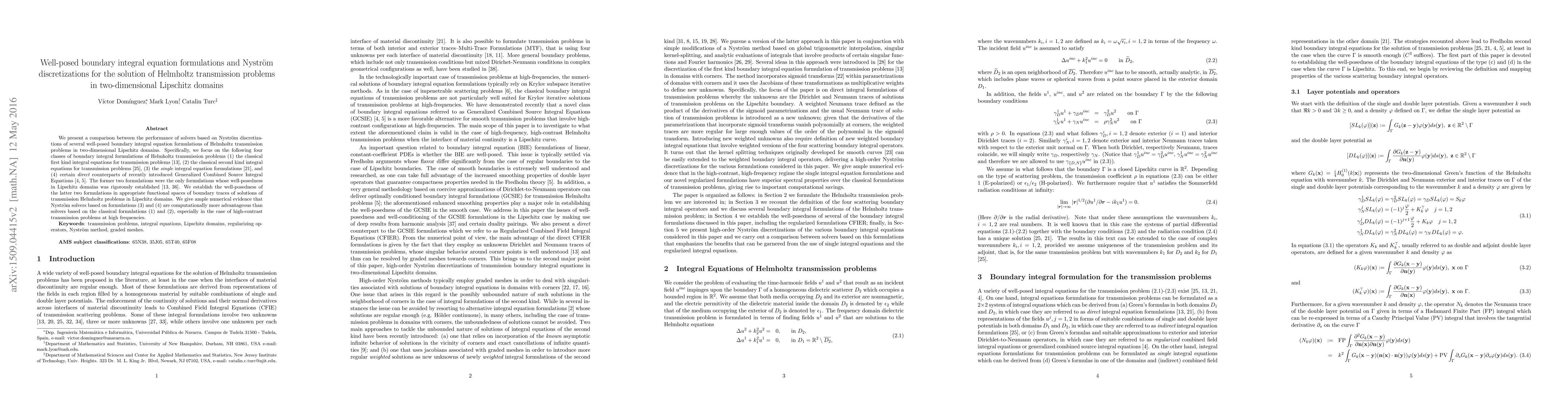 This paper compares Nyström discretizations of four boundary integral equation formulations for solving Helmholtz transmission problems in 2D Lipschitz domains, establishing the well-posedness of the latter two formulations and showing that they are more computationally efficient, particularly for high-contrast problems at high frequencies.