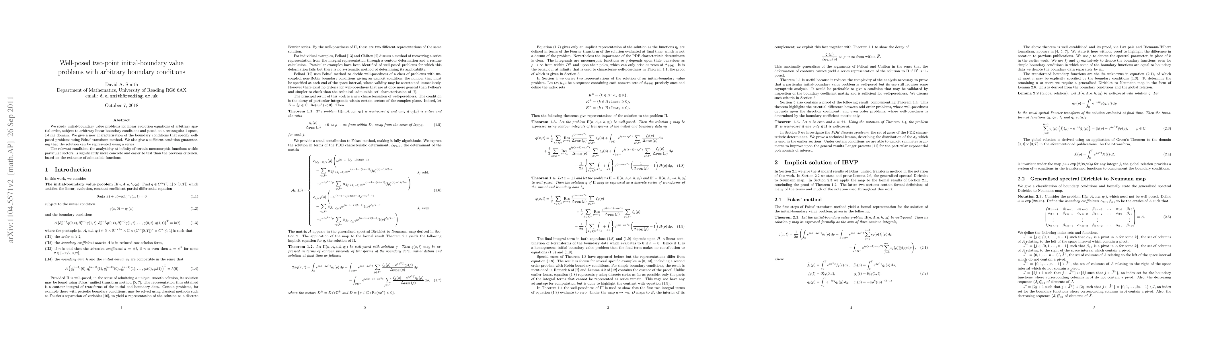 We study initial-boundary value problems for linear evolution equations of arbitrary spatial order, subject to arbitrary linear boundary conditions and posed on a rectangular 1-space, 1-time domain. We give a new characterisation of the boundary conditions that specify well-posed problems using Fokas' transform method. We also give a sufficient condition guaranteeing that the solution can be represented using a series. The relevant condition, the analyticity at infinity of certain meromorphic functions within particular sectors, is significantly more concrete and easier to test than the previous criterion, based on the existence of admissible functions.