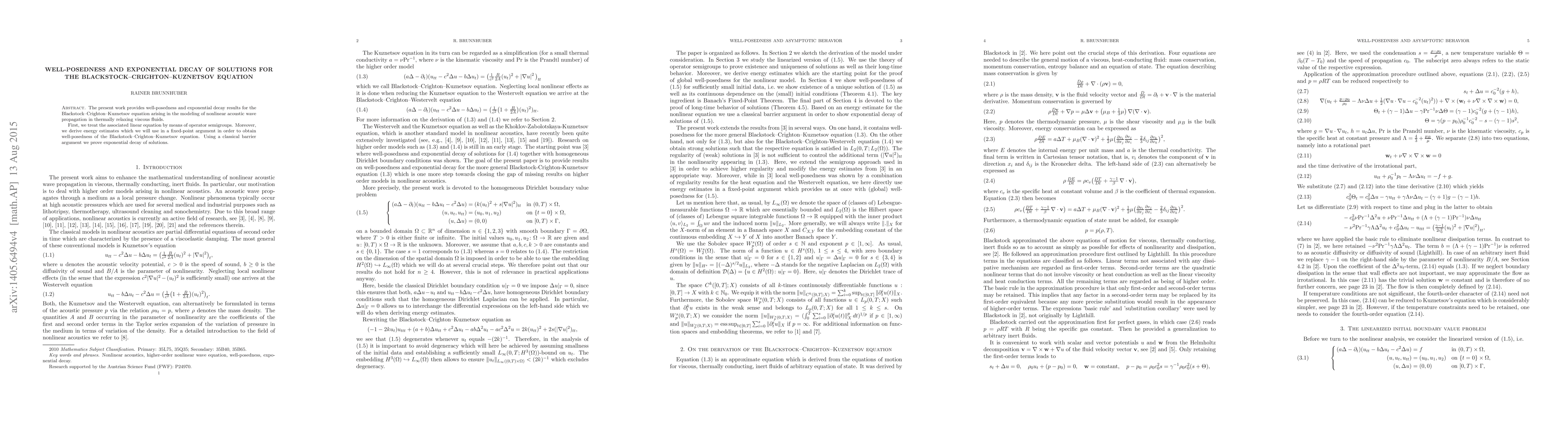 This paper establishes well-posedness and exponential decay for the Blackstock-Crighton-Kuznetsov equation, which models nonlinear acoustic wave propagation in viscous fluids. It utilizes operator semigroups and energy estimates to achieve these results.