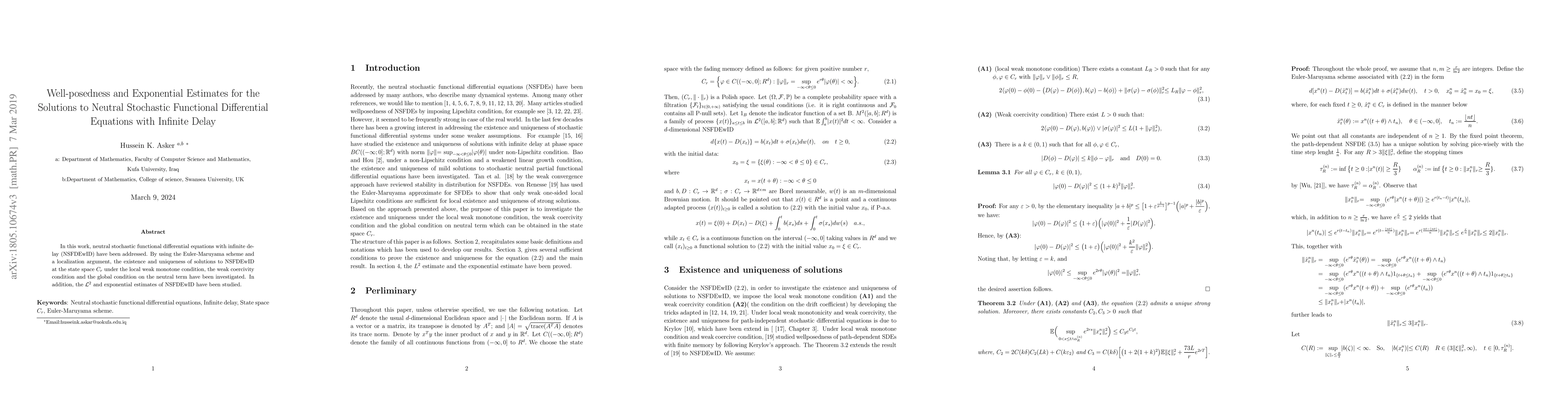 This paper investigates neutral stochastic functional differential equations with infinite delay, proving existence, uniqueness, and $ \mathcal{L}^{2} $ and exponential estimates for solutions under specified conditions, including local weak monotonicity and weak coercivity.