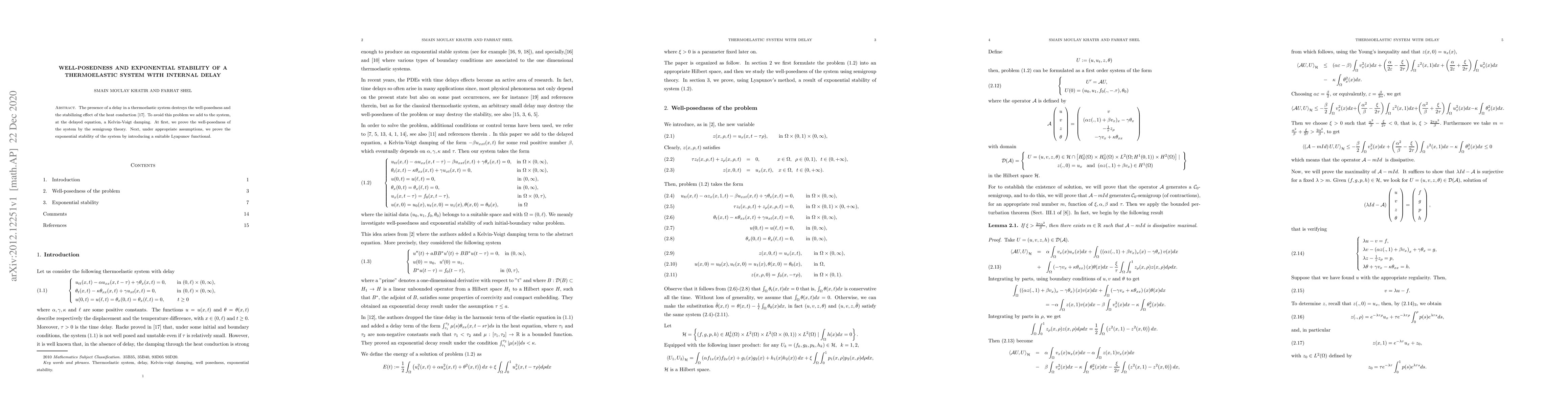 This paper investigates the well-posedness and exponential stability of a thermoelastic system with internal delay. It introduces Kelvin-Voigt damping to the delayed equation to restore stability, proving well-posedness via semigroup theory and exponential stability using a Lyapunov functional.