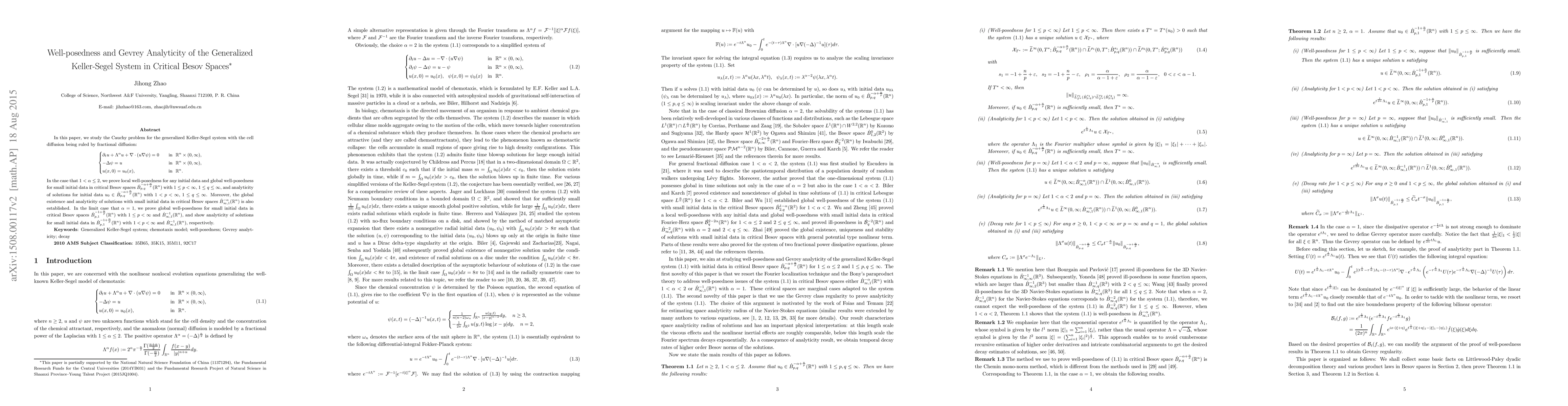 In this paper, we study the Cauchy problem for the generalized Keller-Segel system with the cell diffusion being ruled by fractional diffusion: \begin{equation*} \begin{cases} \partial_{t}u+\Lambda^{\alpha}u-\nabla\cdot(u\nabla \psi)=0\quad &\mbox{in}\ \ \mathbb{R}^n\times(0,\infty), -\Delta \psi=u\quad &\mbox{in}\ \ \mathbb{R}^n\times(0,\infty), u(x,0)=u_0(x), \ \ &\mbox{in}\ \ \mathbb{R}^n. \end{cases} \end{equation*} In the case that $1<\alpha\leq 2$, we prove local well-posedness for any initial data and global well-posedness for small initial data in critical Besov spaces $\dot{B}^{-\alpha+\frac{n}{p}}_{p,q}(\mathbb{R}^{n})$ with $1\leq p<\infty$, $1\leq q\leq \infty$, and analyticity of solutions for initial data $u_{0}\in \dot{B}^{-\alpha+\frac{n}{p}}_{p,q}(\mathbb{R}^{n})$ with $1< p<\infty$, $1\leq q\leq \infty$. Moreover, the global existence and analyticity of solutions with small initial data in critical Besov spaces $\dot{B}^{-\alpha}_{\infty,1}(\mathbb{R}^{n})$ is also established. In the limit case that $\alpha=1$, we prove global well-posedness for small initial data in critical Besov spaces $\dot{B}^{-1+\frac{n}{p}}_{p,1}(\mathbb{R}^{n})$ with $1\leq p<\infty$ and $\dot{B}^{-1}_{\infty,1}(\mathbb{R}^{n})$, and show analyticity of solutions for small initial data in $\dot{B}^{-1+\frac{n}{p}}_{p,1}(\mathbb{R}^{n})$ with $1