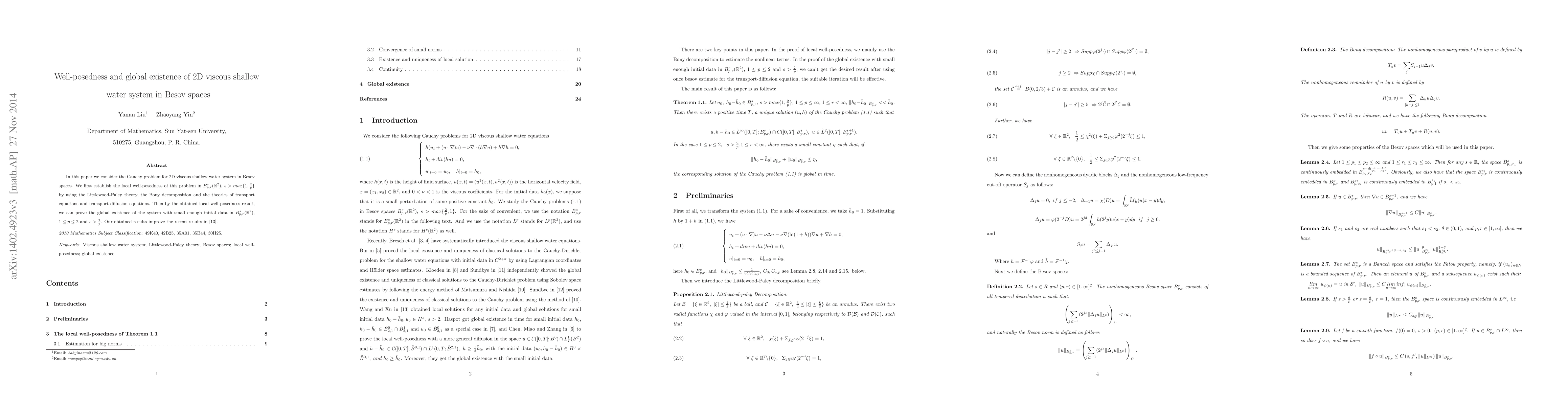 This paper proves local well-posedness and global existence for the 2D viscous shallow water system in Besov spaces using Littlewood-Paley theory and Bony decomposition. Global existence is established for small initial data under specific conditions on Besov norms.