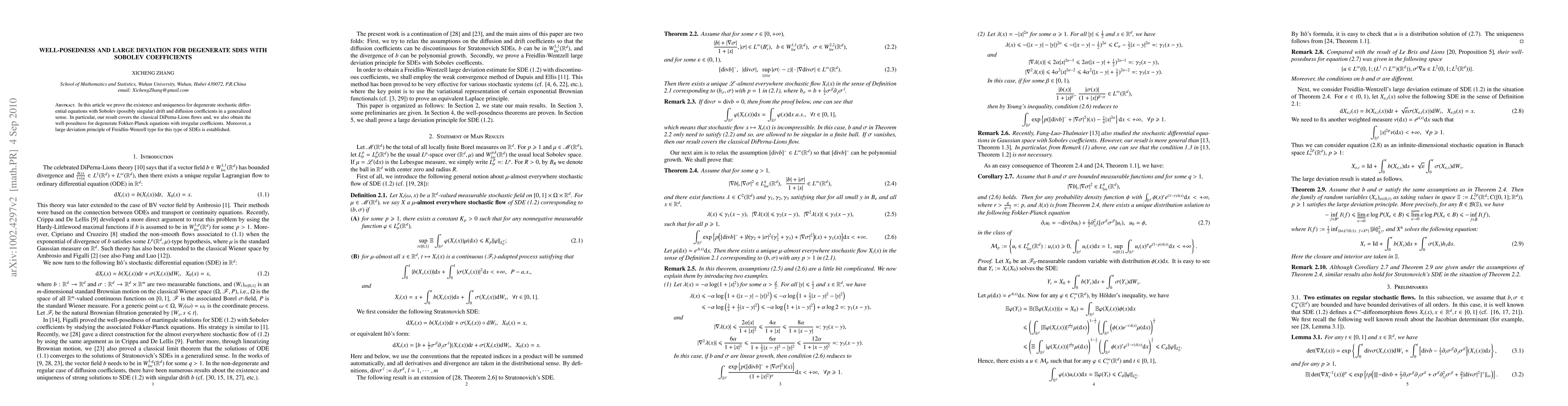 The paper presents a rigorous mathematical framework for the well-posedness and large deviation analysis of degenerate SDEs with Sobolev coefficients, covering both flows and Fokker-Planck equations.