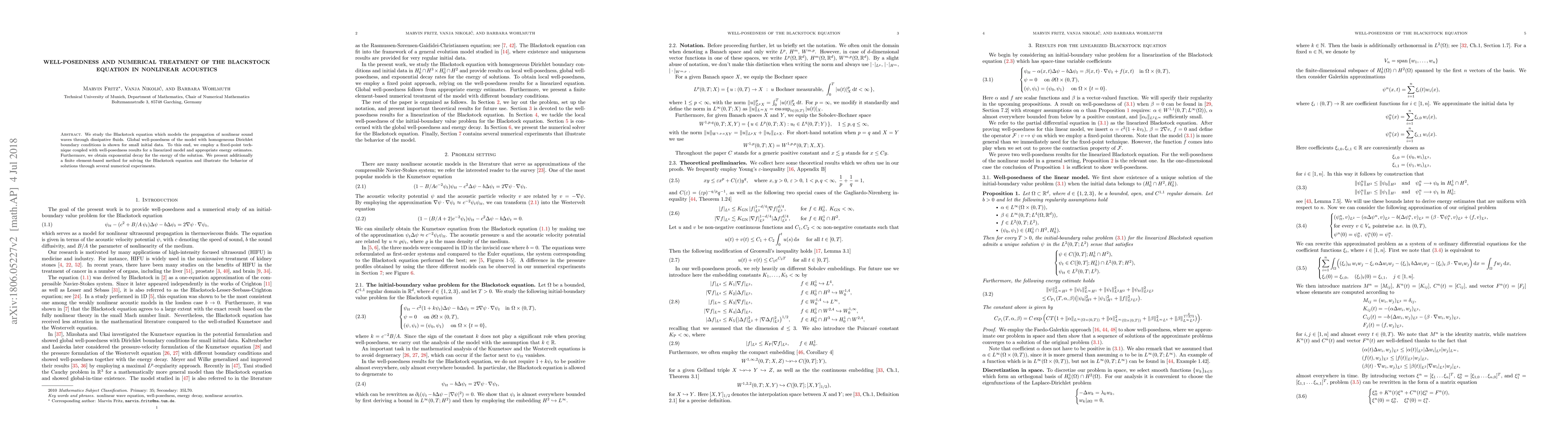This paper proves global well-posedness for the Blackstock equation modeling nonlinear sound wave propagation in dissipative fluids using a fixed-point technique and energy estimates. It also introduces a finite element method for numerical solutions and demonstrates the method's effectiveness through numerical experiments.