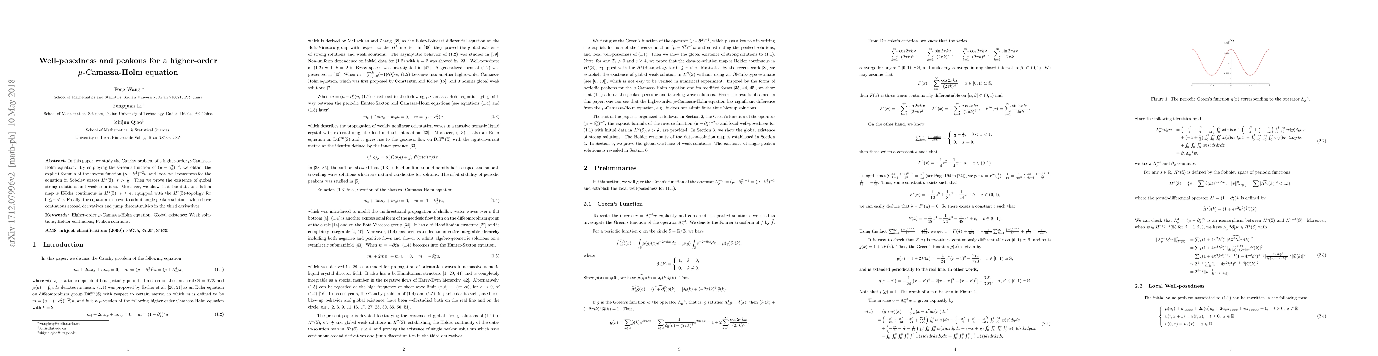 Researchers studied a higher-order equation related to Camassa-Holm equations, finding local well-posedness for certain initial data and global strong solutions with smooth and weak solutions.