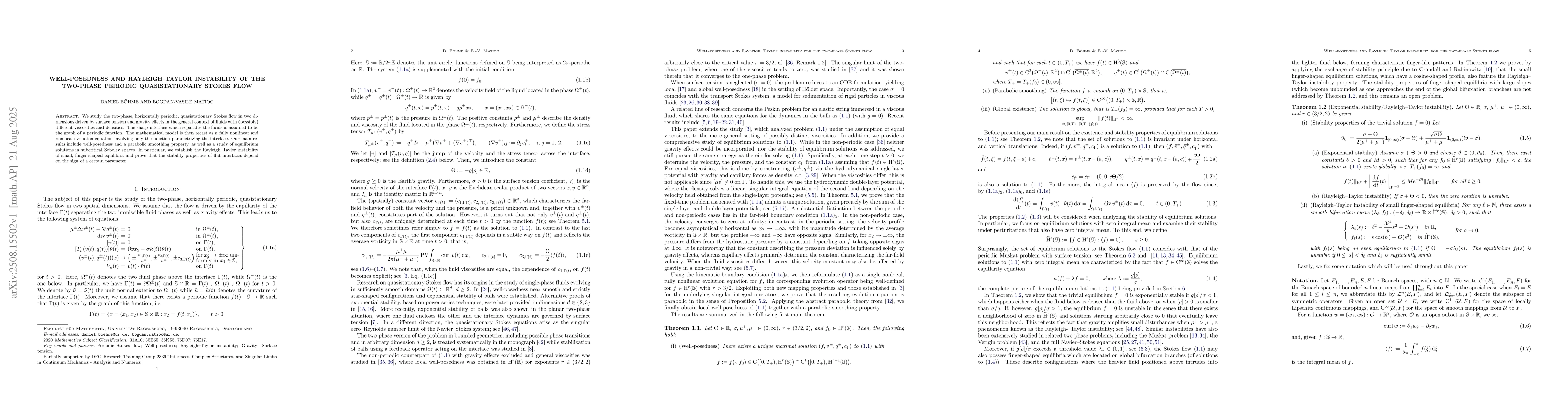 We study the two-phase, horizontally periodic, quasistationary Stokes flow in two dimensions driven by surface tension and gravity effects in the general context of fluids with (possibly) different viscosities and densities. The sharp interface which separates the fluids is assumed to be the graph of a periodic function. The mathematical model is then recast as a fully nonlinear and nonlocal evolution equation involving only the function parametrizing the interface. Our main results include well-posedness and a parabolic smoothing property, as well as a study of equilibrium solutions in subcritical Sobolev spaces. In particular, we establish the Rayleigh-Taylor instability of small, finger-shaped equilibria and prove that the stability properties of flat interfaces depend on the sign of a certain parameter.