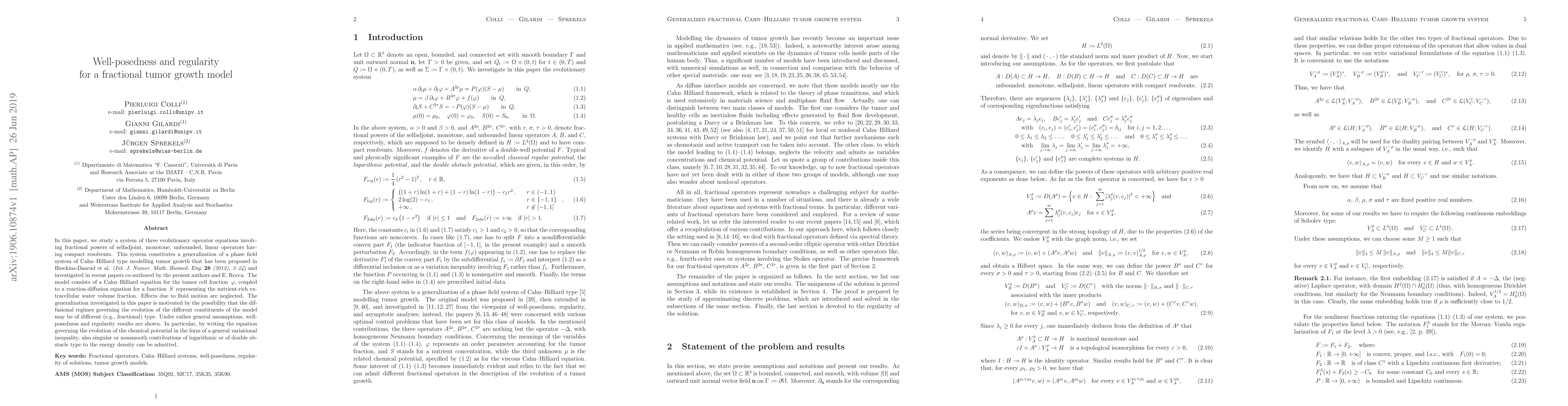 This paper investigates a generalized fractional tumor growth model based on a phase field system of Cahn-Hilliard type, focusing on well-posedness and regularity. The model includes a Cahn-Hilliard equation for tumor cell fraction and a reaction-diffusion equation for nutrient-rich extracellular water volume, with fractional diffusional regimes considered.