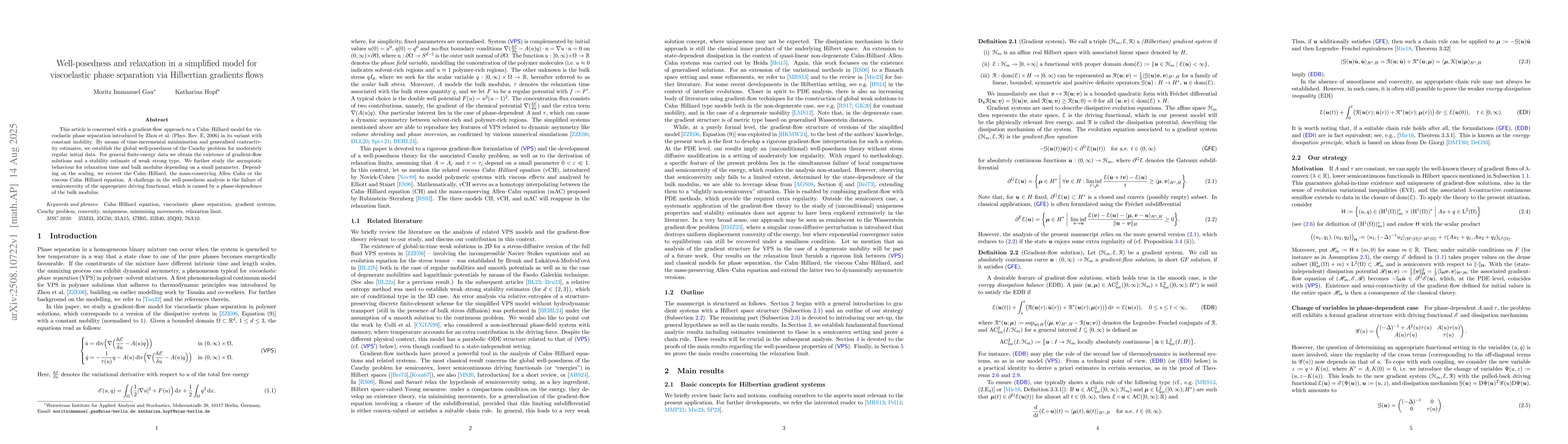 This article is concerned with a gradient-flow approach to a Cahn-Hilliard model for viscoelastic phase separation introduced by Zhou et al. (Phys. Rev. E, 2006) in its variant with constant mobility. By means of time-incremental minimisation and generalised contractivity estimates, we establish the global well-posedness of the Cauchy problem for moderately regular initial data. For general finite-energy data we obtain the existence of gradient-flow solutions and a stability estimate of weak-strong type. We further study the asymptotic behaviour for relaxation time and bulk modulus depending on a small parameter. Depending on the scaling, we recover the Cahn-Hilliard, the mass-conserving Allen-Cahn or the viscous Cahn-Hilliard equation. A challenge in the well-posedness analysis is the failure of semiconvexity of the appropriate driving functional, which is caused by a phase-dependence of the bulk modulus.