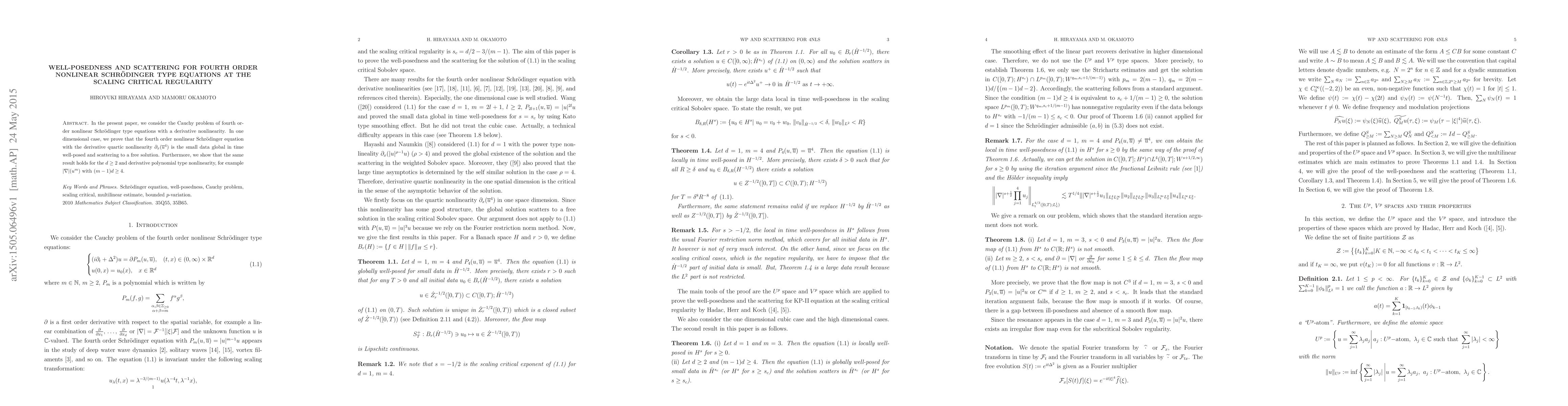 This paper proves global well-posedness and scattering for fourth order nonlinear Schrödinger equations with derivative nonlinearities in one dimension and higher dimensions, showing that small data solutions remain globally well-defined and scatter to free solutions over time.