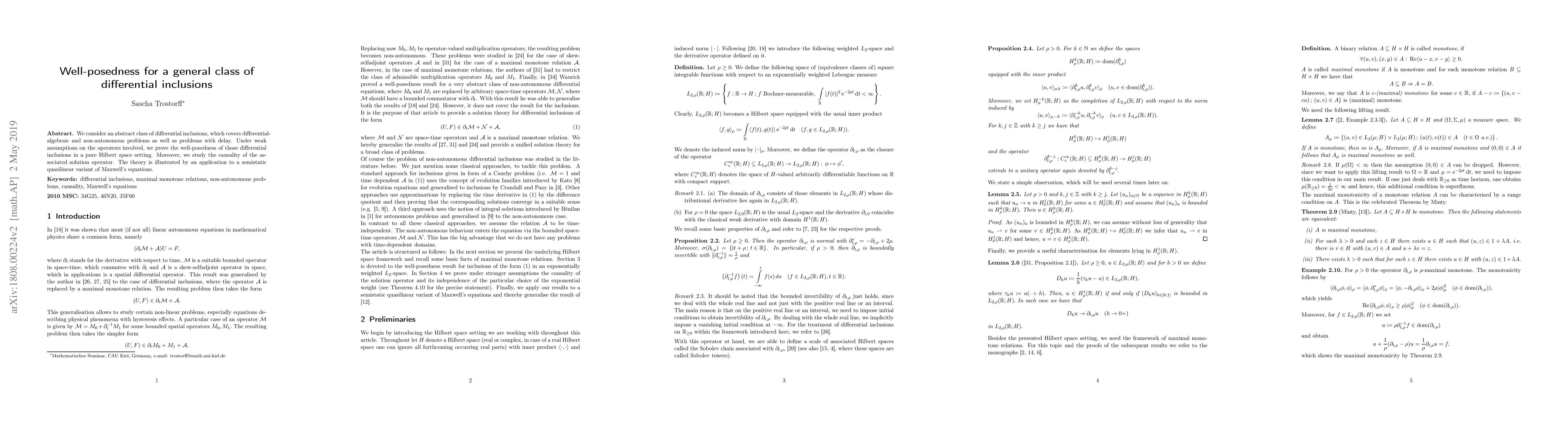 This paper proves well-posedness for a broad class of differential inclusions, including differential-algebraic, non-autonomous, and delay problems, under minimal operator assumptions in a Hilbert space setting. It also examines the causality of the solution operator and demonstrates the theory through an application to semistatic quasilinear Maxwell's equations.