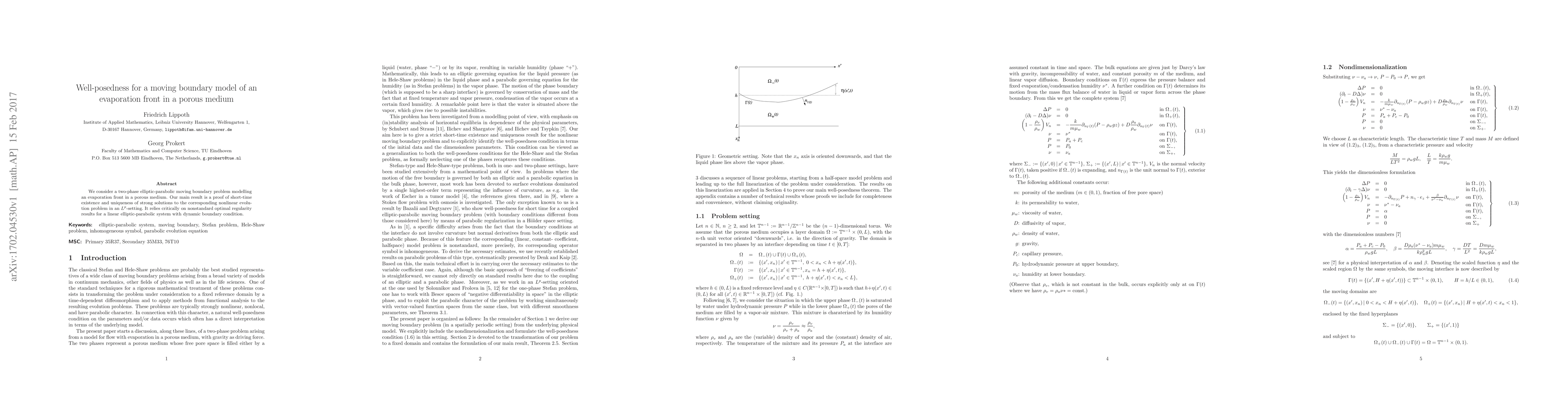 We consider a two-phase elliptic-parabolic moving boundary problem modelling an evaporation front in a porous medium. Our main result is a proof of short-time existence and uniqueness of strong solutions to the corresponding nonlinear evolution problem in an $L_{p}$-setting. It relies critically on nonstandard optimal regularity results for a linear elliptic-parabolic system with dynamic boundary condition.