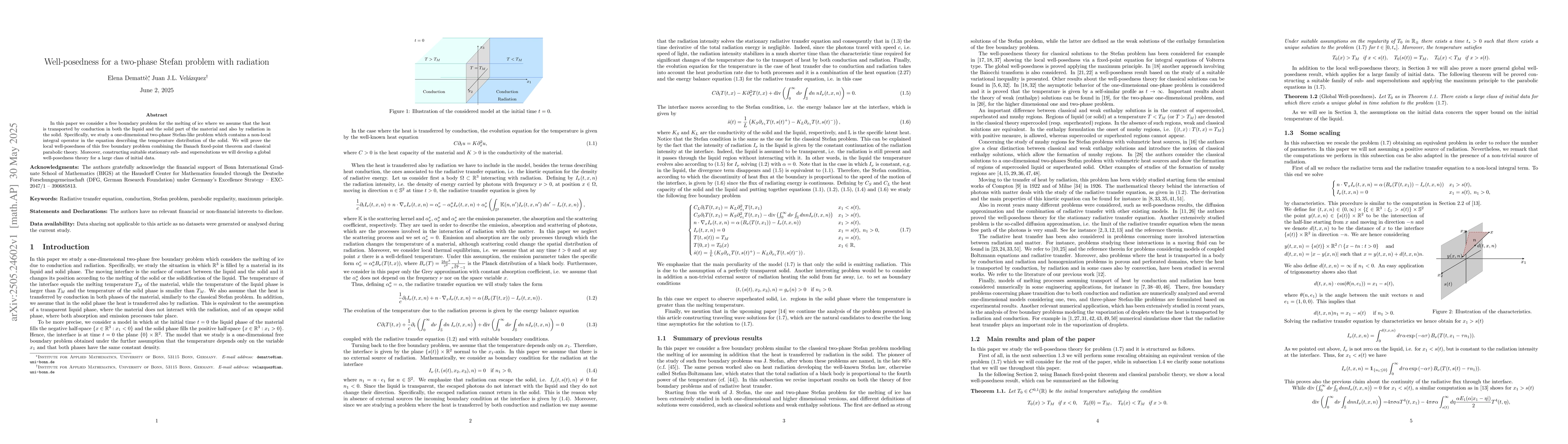 The research employs a combination of the Banach fixed-point theorem and classical parabolic theory to prove the well-posedness of a one-dimensional two-phase Stefan-like problem involving conduction and radiation in a solid medium.