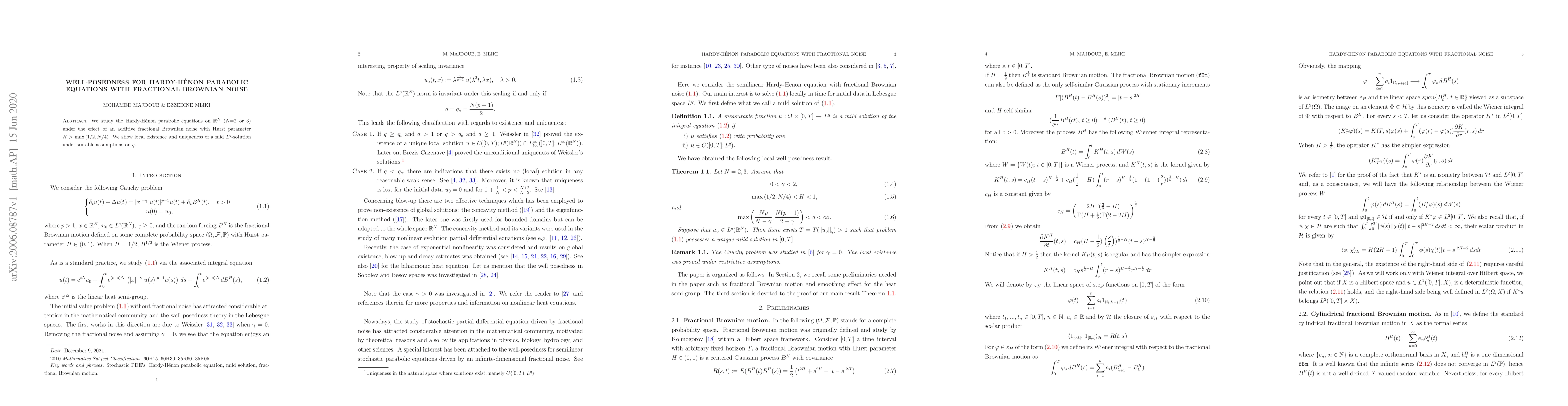 This paper investigates the well-posedness of Hardy-Hénon parabolic equations on $\mathbb{R}^{N}$ ($N=2, 3$) under fractional Brownian noise. It establishes local existence and uniqueness of an $L^{q}$-solution under specific conditions on $q$.