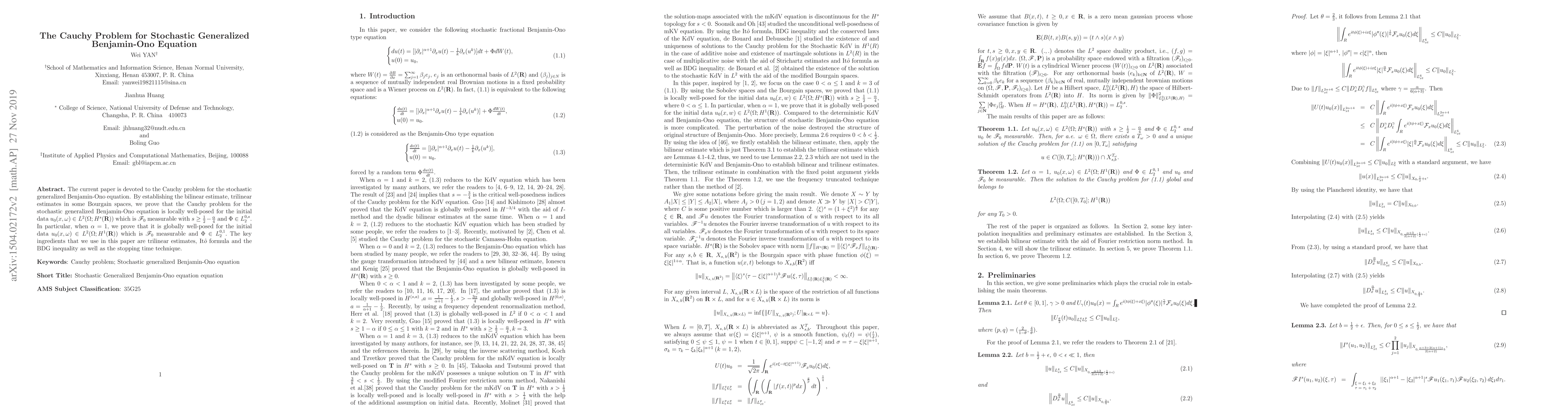 This paper is devoted to the Cauchy problem for the stochastic generalized Benjamin-Ono equation. By using the Bourgain spaces and Fourier restriction method and the assumption that $u_{0}$ is $\mathcal{F}_{0}$-measurable, we prove that the Cauchy problem for the stochastic generalized Benjamin-Ono equation is locally well-posed for the initial data $u_{0}(x,w)\in L^{2} (\Omega; H^{s}(\mathbb{R}))$ with $s\geq\frac{1}{2}-\frac{\alpha}{4}$, where $0< \alpha \leq 1.$ In particular, when $u_{0}\in L^{2}(\Omega; H^{\frac{\alpha+1}{2}}(\mathbb{R}))\cap L^{\frac{2(2+3\alpha)}{\alpha}}(\Omega; L^{2}(\mathbb{R}))$, we prove that there exists a unique global solution $u\in L^{2}(\Omega; H^{\frac{\alpha+1}{2}}(\mathbb{R}))$ with $0< \alpha \leq 1.$