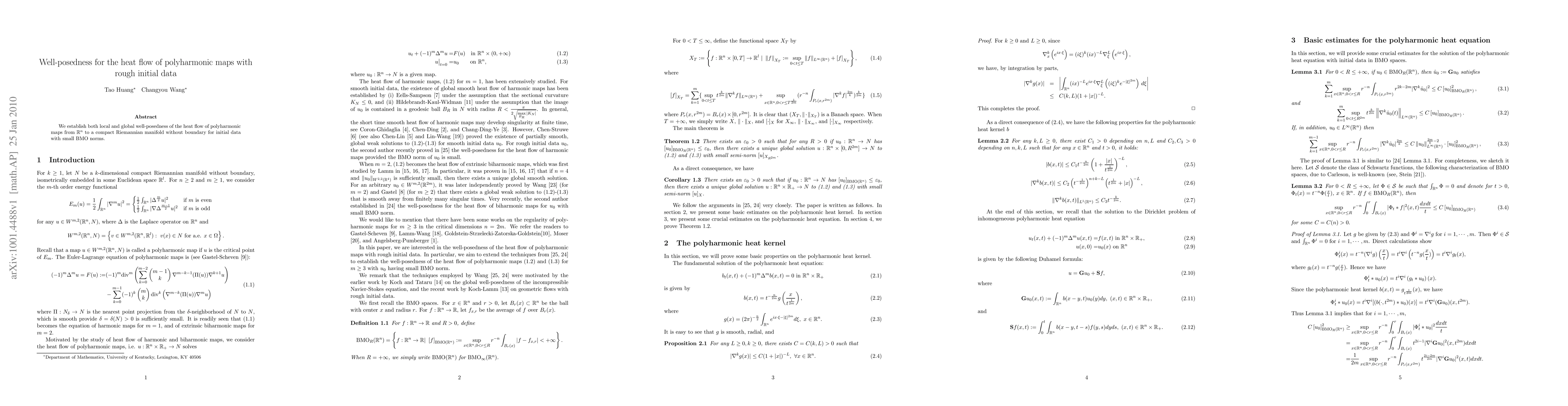 Summary: This paper establishes local and global well-posedness for the heat flow of polyharmonic maps from $R^n$ to a compact Riemannian manifold, even when the initial data has small BMO norms. The results extend the understanding of the flow's behavior under rough initial conditions.