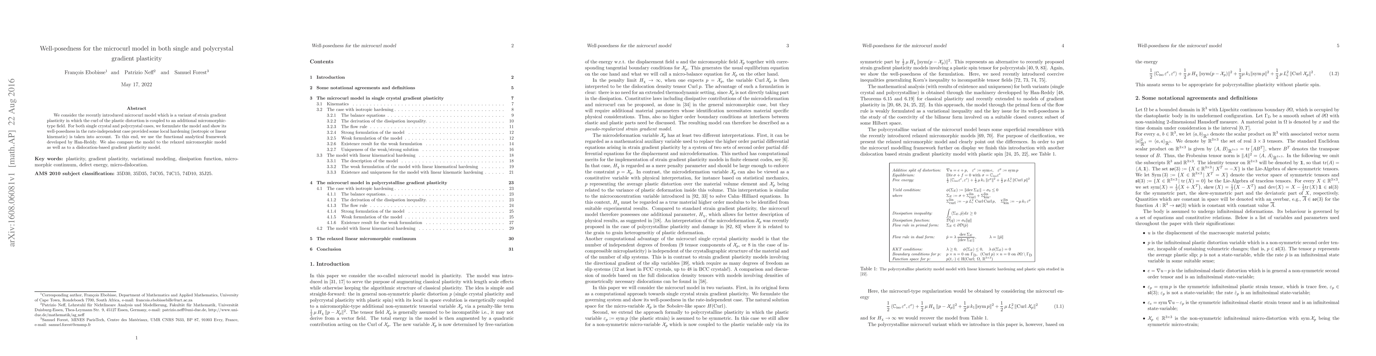 This paper formulates the microcurl model for strain gradient plasticity, demonstrating its well-posedness in single and polycrystal cases under rate-independent conditions with local hardening. The study employs a functional analytical framework and compares the model to other gradient plasticity models.